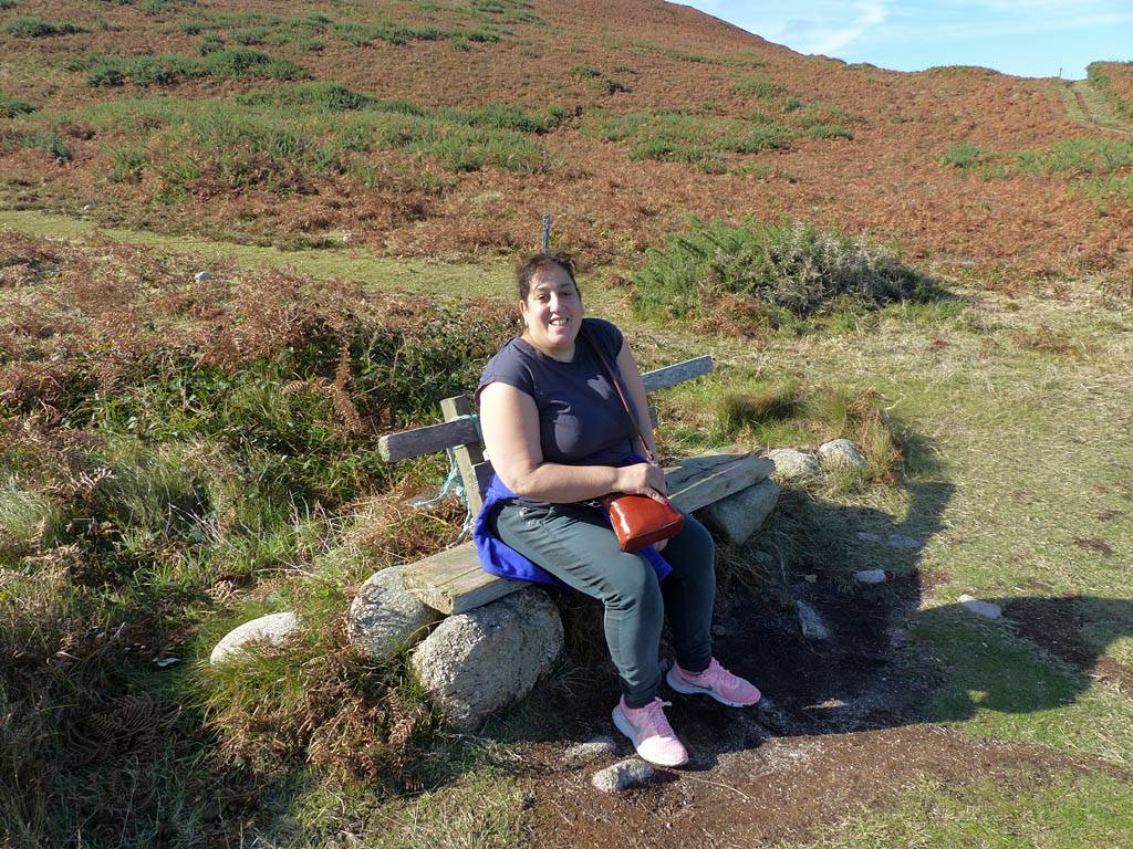 We then made our way up and over the hill and down the other side to the Eastern end of Bread & Cheese Cove. We then walked Westwards along the track past Burnt Hill. Along the way we found a nice bench to pause and enjoy the epic scenery. At Bull's Porth by a cove a track led back Southwards that took us back over the central ridge then into Higher Town.