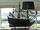 Walking into Lower Town. | A nice seating area outside Karma Spa Hotel. | Nice purple flowers too. | Karma Spa Hotel. | Nice ship model inside. |