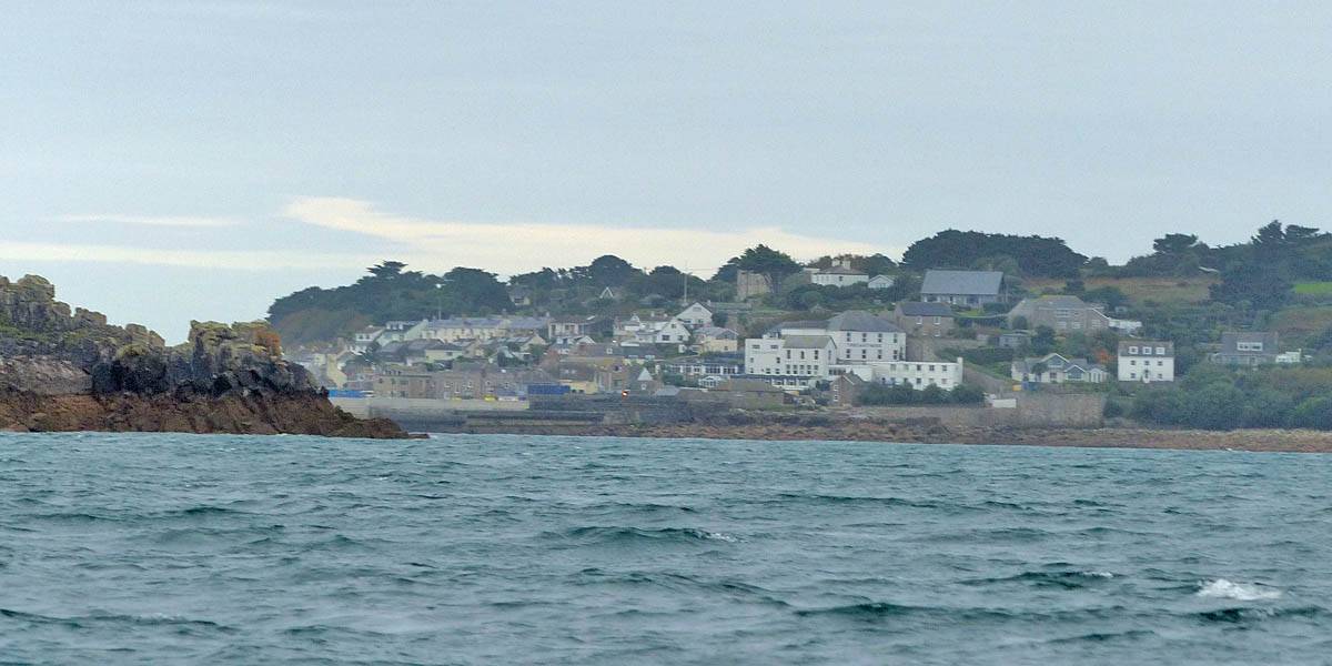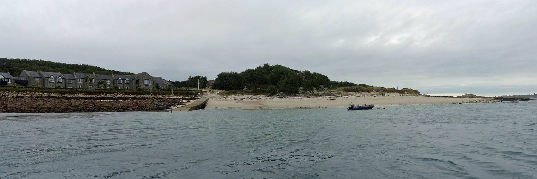 One of many small rocky islands in the sea between St. Mary's and St. Martin's. | A Shag bobbing about in the water. | Approaching Higher Town Quay. |