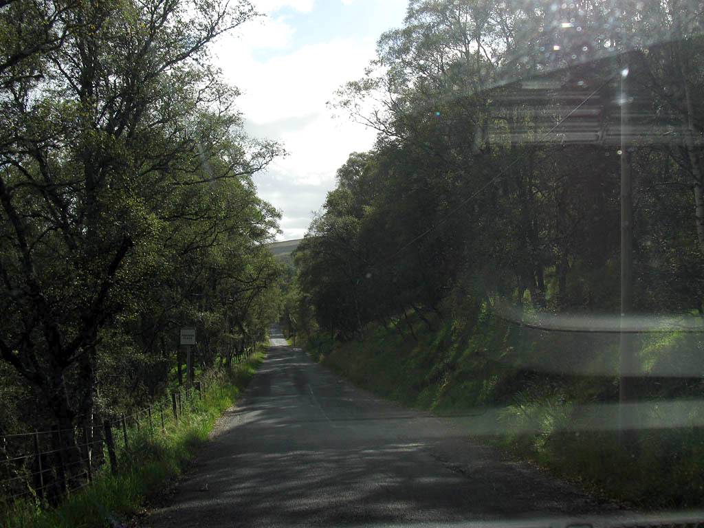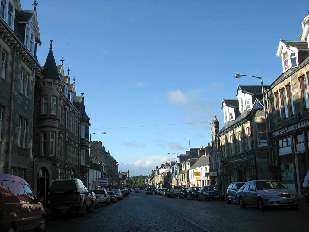 We packed up before breakfast and checked out of Ravenscraig BnB by 9AM. Once on the road we followed a slow procession of trucks and lorries towards Grantown-on-Spey. (The lorry in front of me shredded a tire too!) I drove us into Grantown to look around but we didn't stop. Soon we were off into the hills on the A939. Nice to be driving a fun road again and with no traffic too! Soon we reached Tomintoul, the highest village in the Highlands at 345m (1132ft).