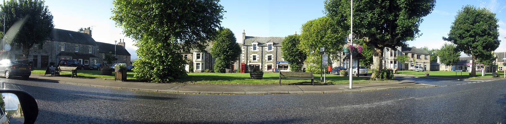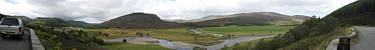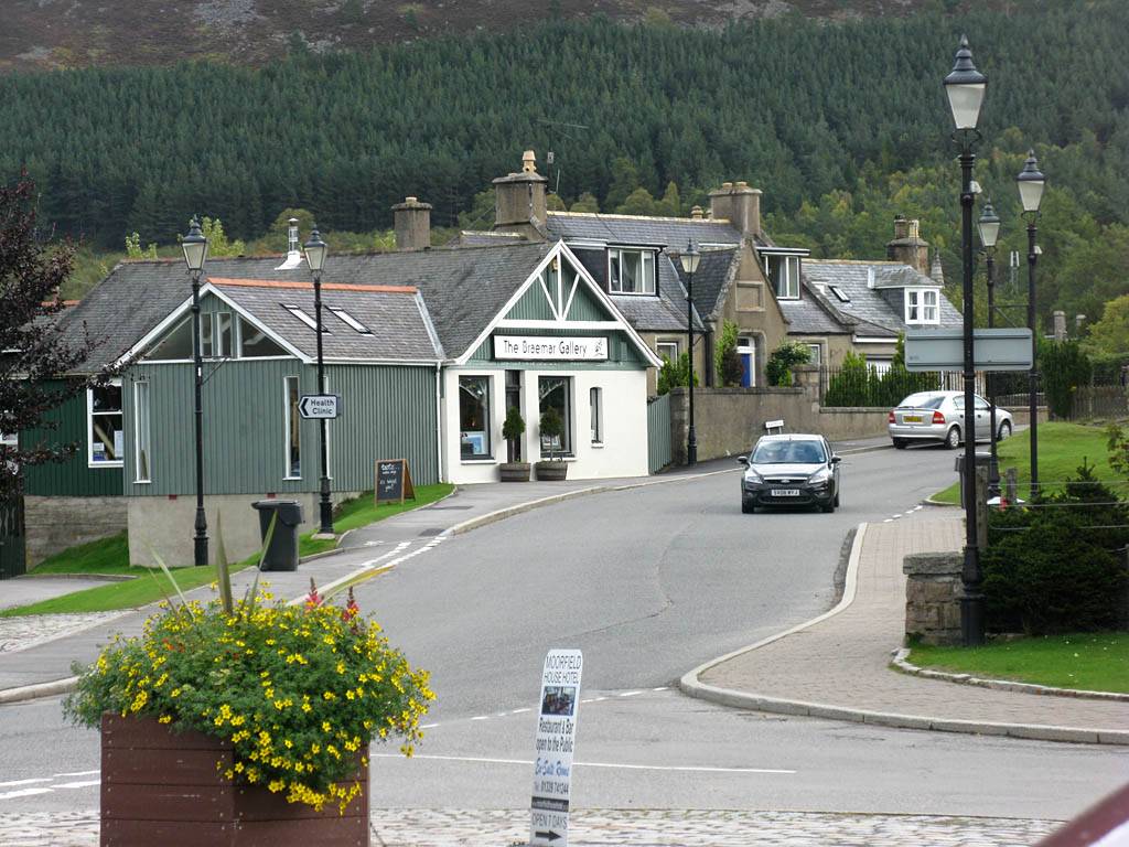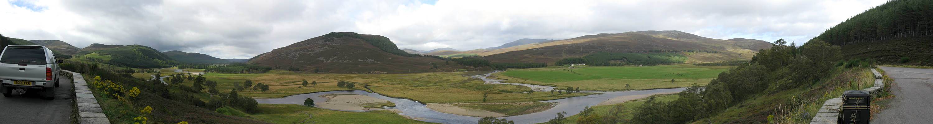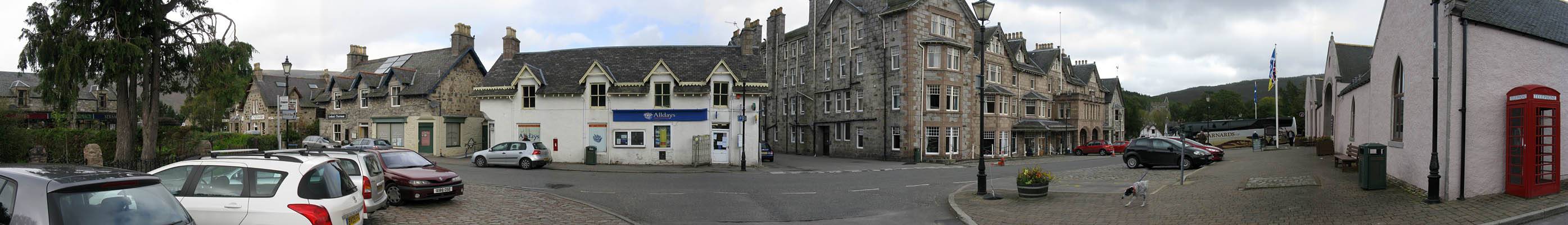 Looking downstream from the gorge. | Driving East back towards Braemar, looking over the Dee en route. | Looking into Braemar from the Taste café. | Panorama in the centre of Braemar. |