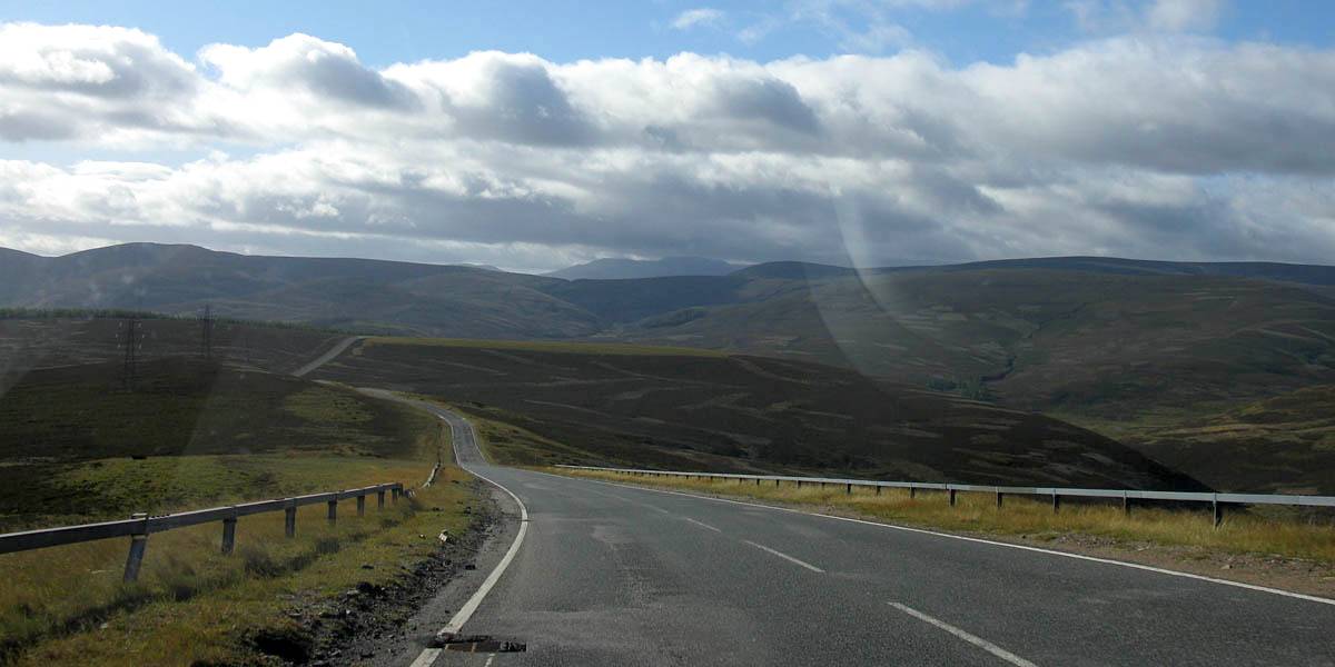 Traveling Eastbound along the A95 alongside the Strathspey steam railway. | Grantown on Spey. | Time for some fun driving as we hit the A939 from Speyside to Deeside. |
