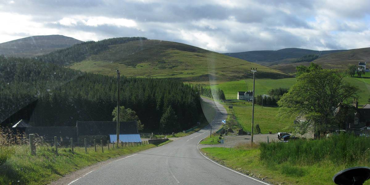 Winding our way through the hills in nice weather. | Tomintoul. |
