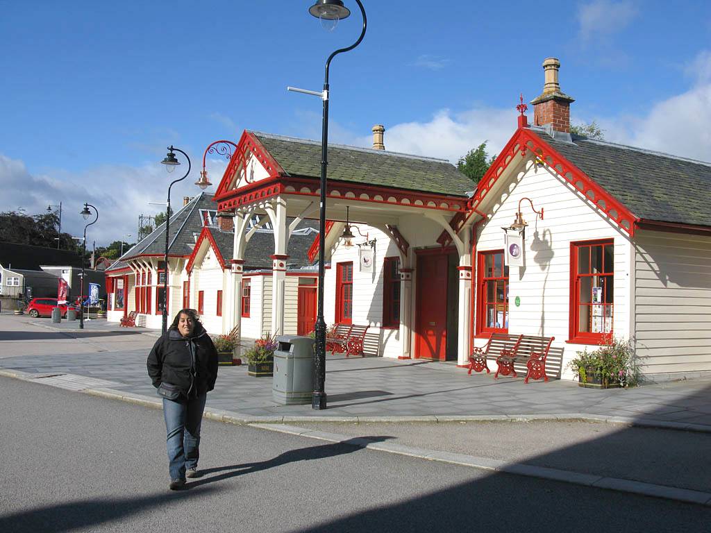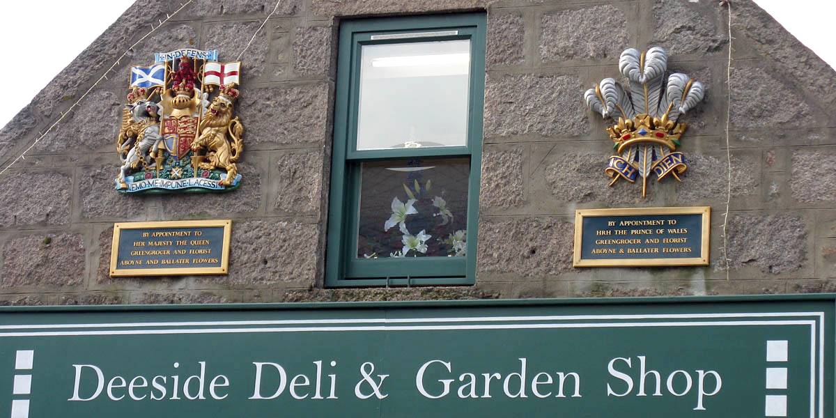 The royal connection in evidence at Deeside with the Royal Charter seals above some of the shops. | Renée at the Old Royal Station. | Looking around at the Old Royal Station. | The Old Royal Station platform. | The Old Royal Station from another angle. | The Baker that produces Balmoral Bread. |