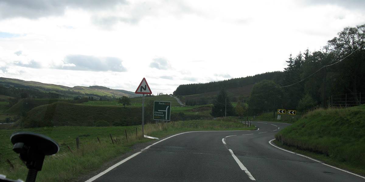 Then We decided we wanted to push on to Edinburgh so got back on the A93 and headed for the Cairnwell Pass, the highest main road pass in the UK at 670m (2199ft). It was raining up on the pass so the view wasn't great but as soon as we descended the other side into Glen Shee conditions improved again. Ahh it was so nice to drive past Glen Shee again. A nice roller coaster ride of a route and no traffic. The few cars we did catch up with were easily overtaken and soon enough we passed Blairgowrie and then Perth. We then hit the M90 motorway which took us directly to the Forth Bridge.