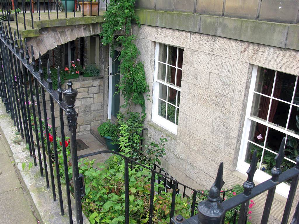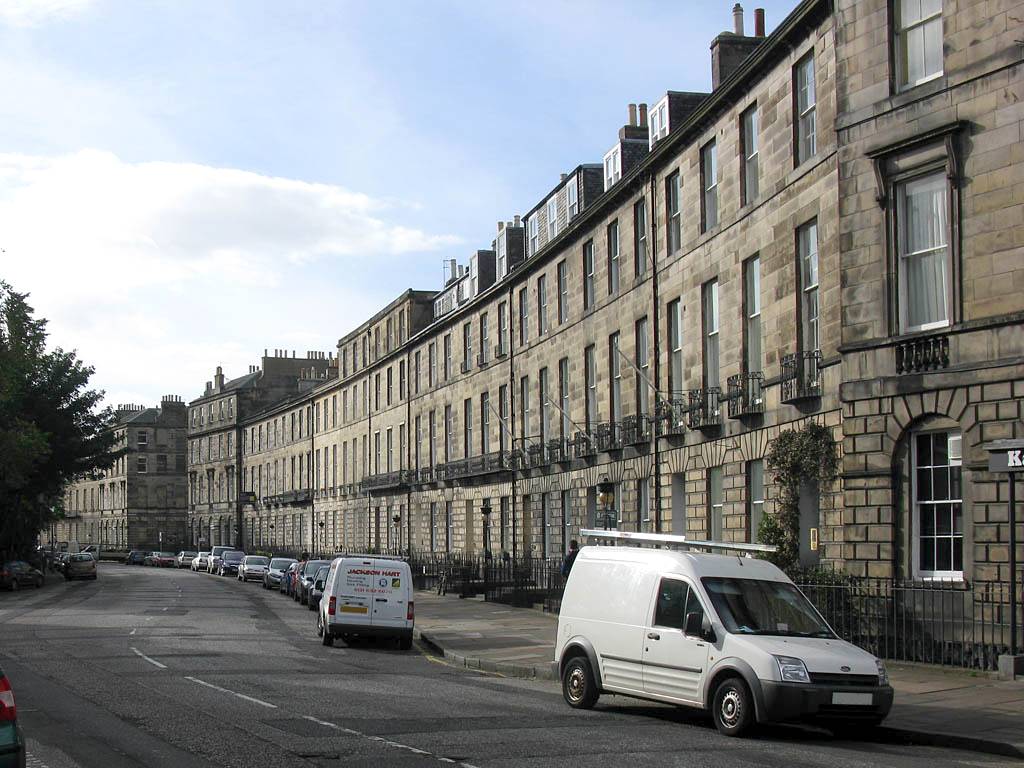 Looking downhill along Dublin Street from near the BnB. In the distance is the Firth of Forth with Fife beyond. | The entrance to the BnB. | Uphill is Queen Street. | A large terrace along Abercromby Place. | St Andrew's Square. |