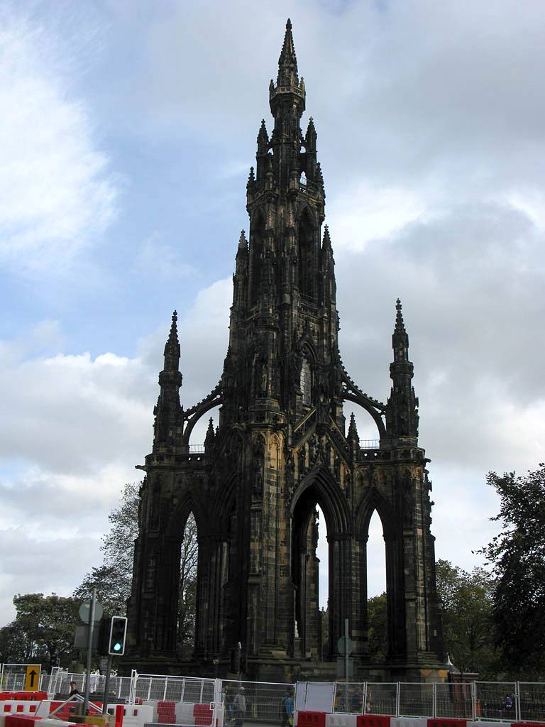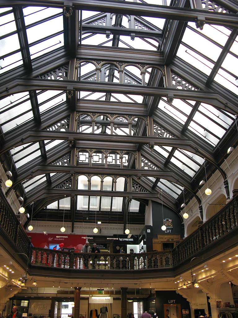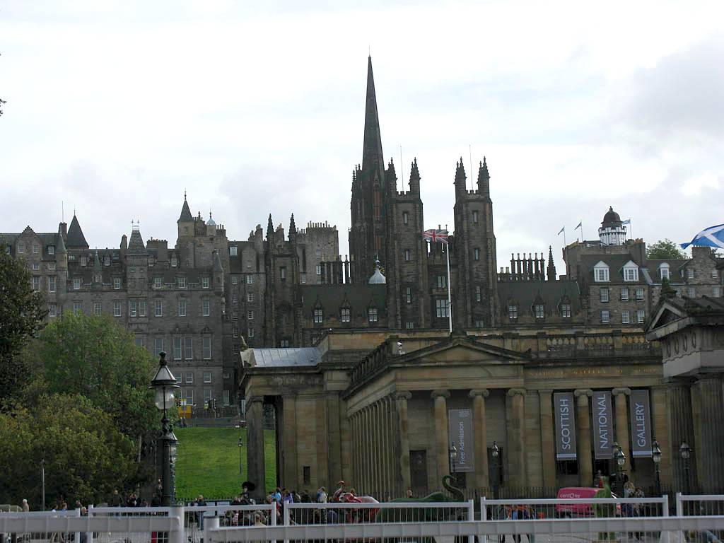 Princes Mall and one of many nice gothic style buildings. | Looking East to Carlton Hill. | Inside Jenners, a large department store. | The Scott Monument. | The Scottish National Gallery with Old Town beyond. |