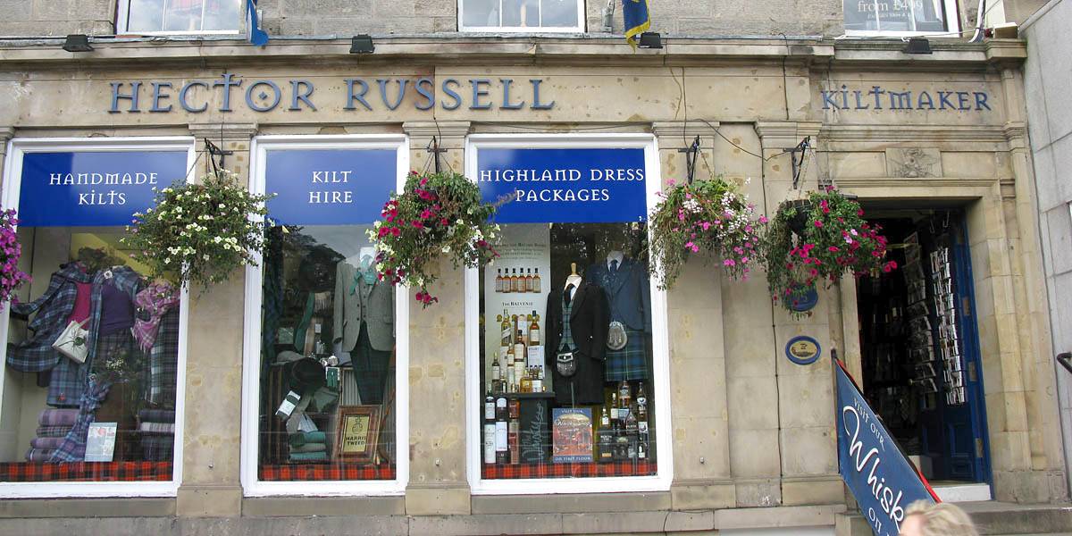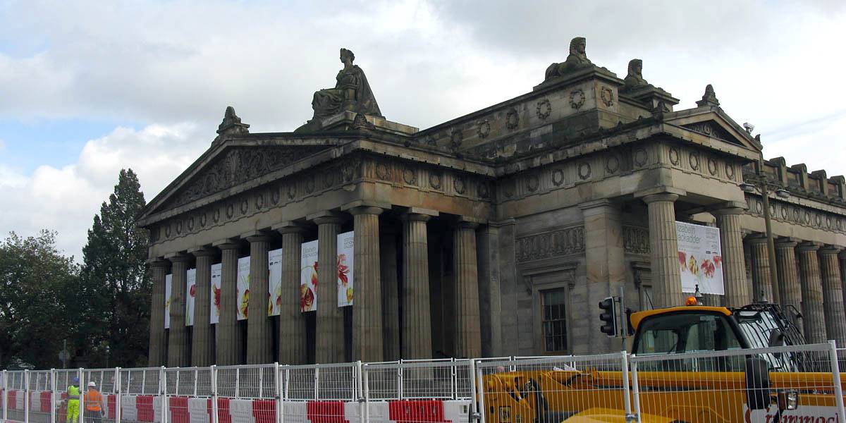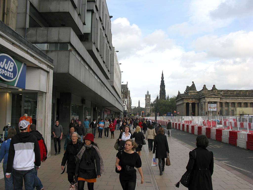 A closer view of The Scottish National Gallery. | Looking West and East along Princes Street from near the middle. | I knew there must be a Kilt shop somewhere... | Edinburgh Castle stands prominently above us to the South. |