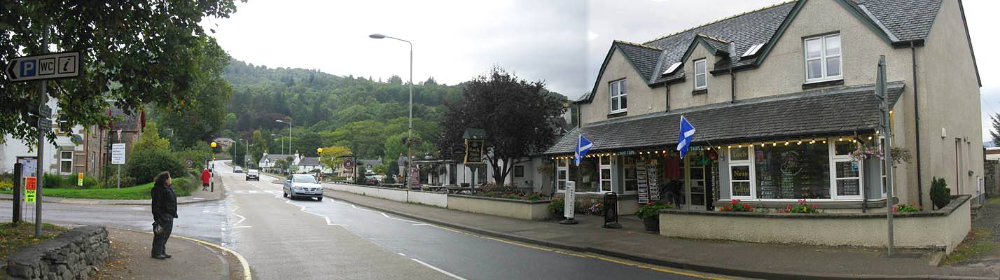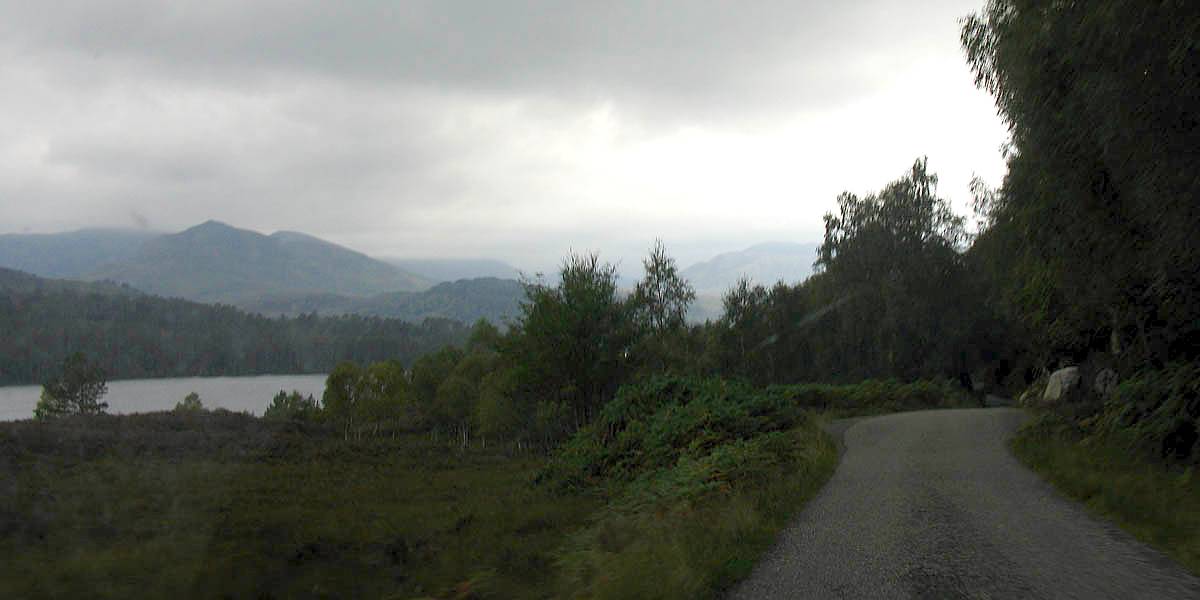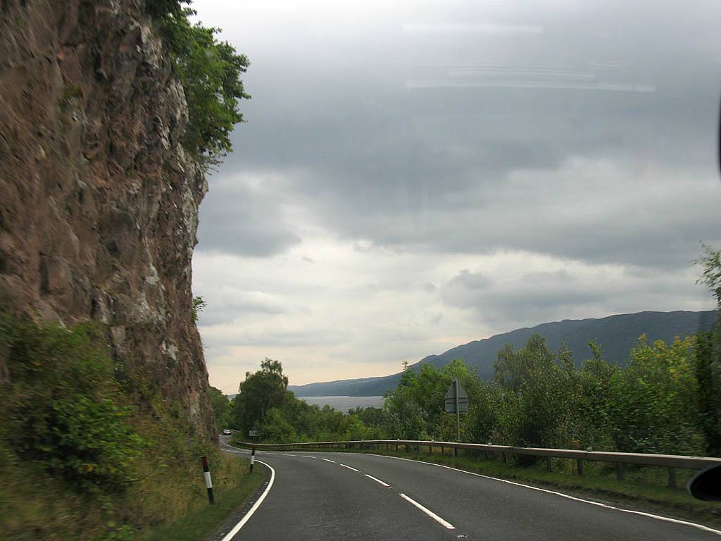 Renée at Achnahannet, Loch Ness. | Drumnadrochit where we stopped for a break and for gifts. | Driving Southwest along a single track road from Cannich into Glen Affric alongside Loch Beinn a' Mheadhoin. |