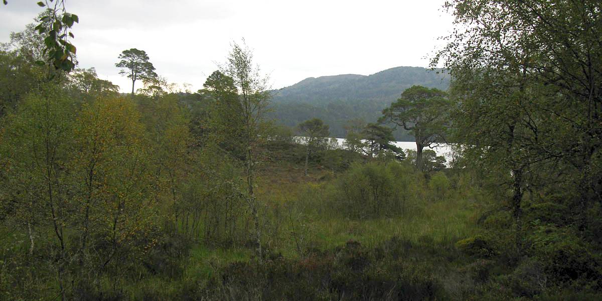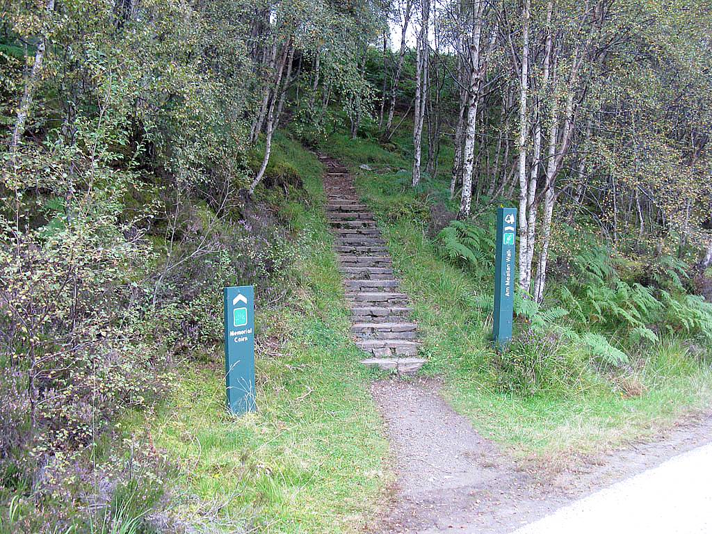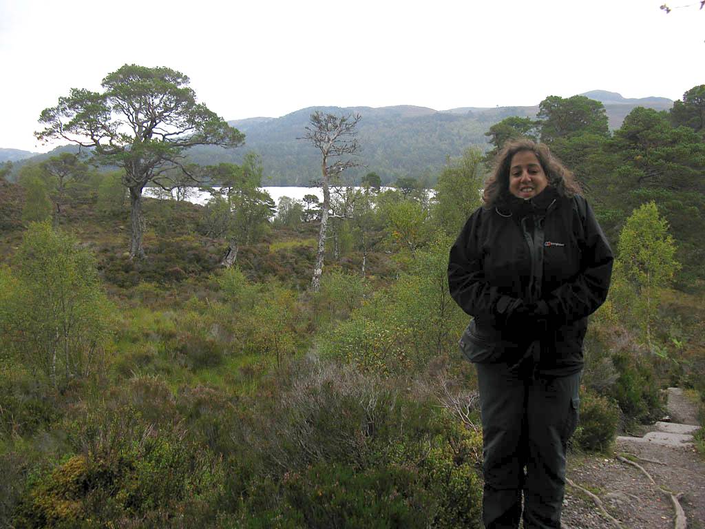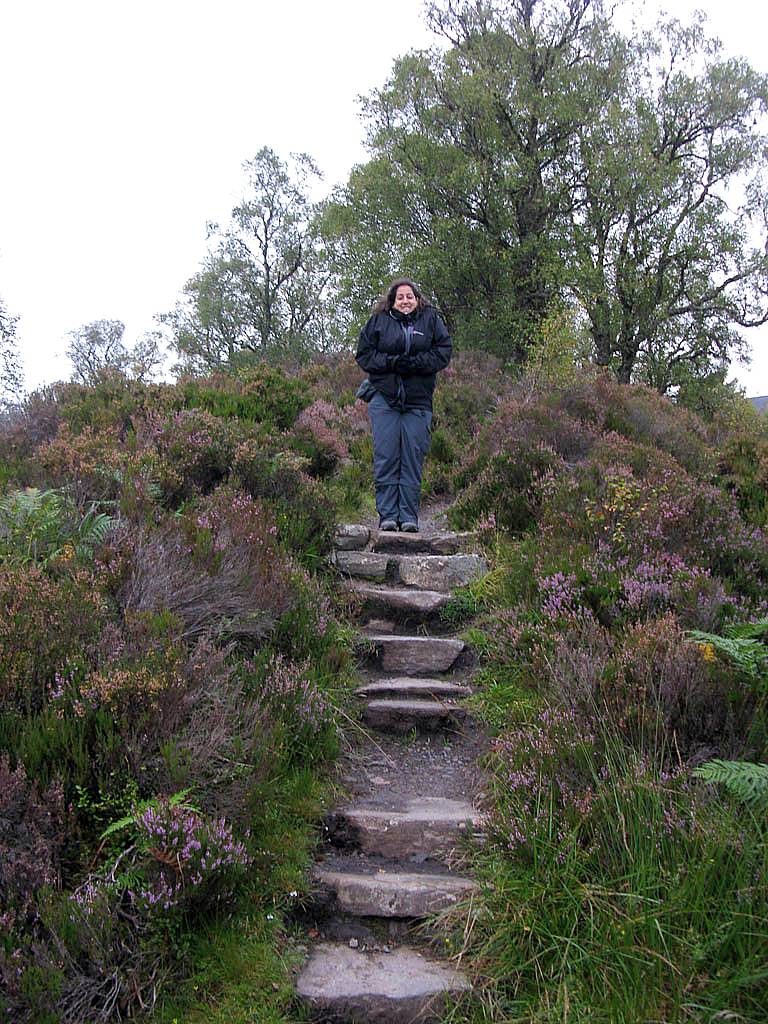 Looking Eastwards to the Westward end of Loch Beinn a' Mheadhoin as we start walking. | Mushrooms. | The lovely woodland of Glen Affric. | Renée with Loch Beinn a' Mheadhoin in the background and up a staircase on the path. | Another view to Loch Beinn a' Mheadhoin. |