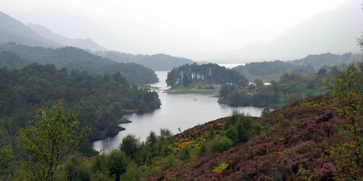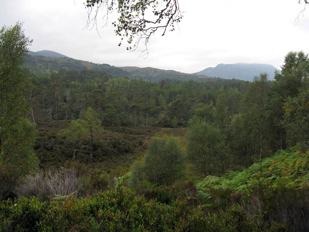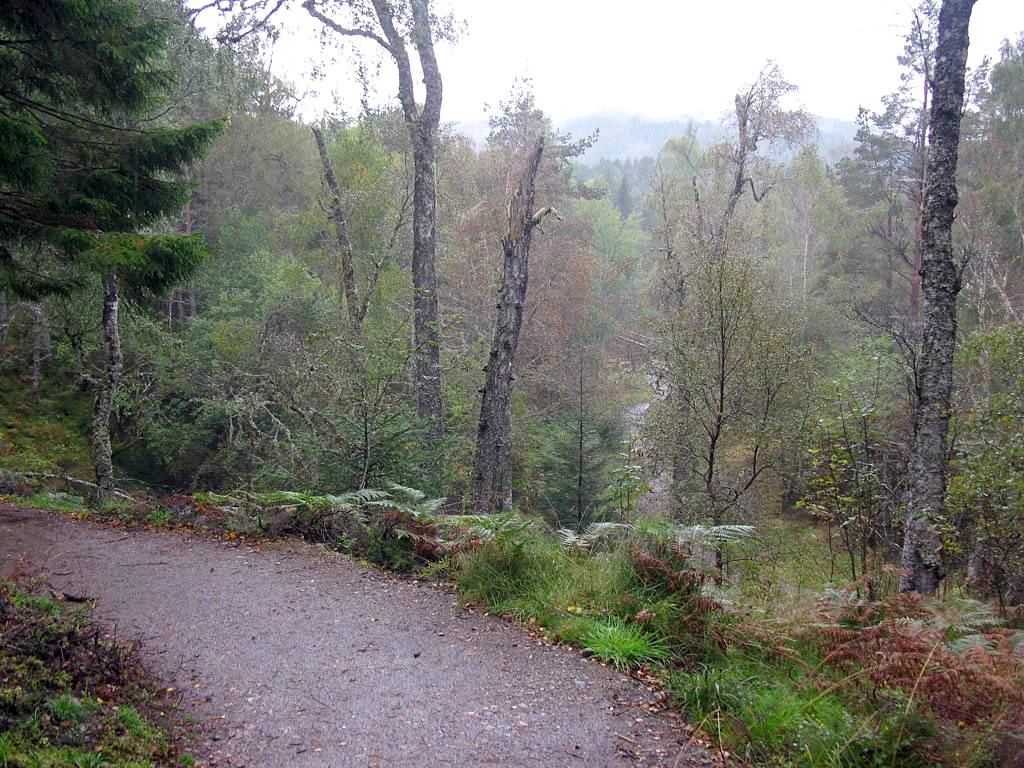 By 9am we had checked out from the Distillery Guesthouse. We drove up the A82, past Loch Lochy and Loch Oich, to Loch Ness. In Fort Augustus we had a long wait as the bridge had opened for high masted boats to pass through. Eventually we got moving again. We drove along Loch Ness, stopping briefly in Invermoriston to rest then again at a good lookout point just south of Drumnadrochit. At Drumnadrochit we stopped at a gift shop and for comfort breaks before heading West to Cannich and up the single track road into Glen Affric. The landscape was as lovely as ever despite the grey conditions. We carried on all the way to the far end of Loch Beinn a' Mheadhoin.
