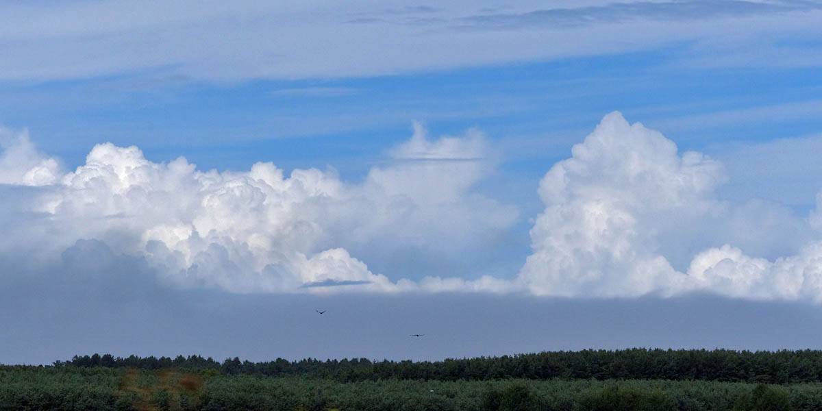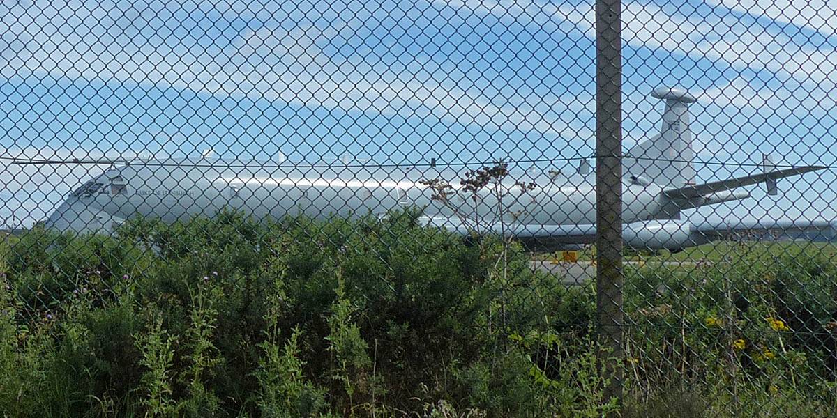 Majestic towering cumulus pushing up into a layer of altostratus as we head out. | A Nimrod parked at RAF Kinloss as we go past. | Looking Southwest across a misty Findhorn Estuary from the South side of Findhorn. | Walking up onto the dunes after parking. |