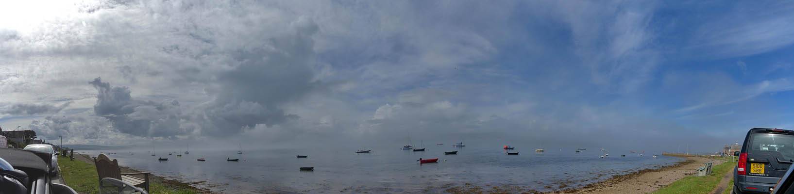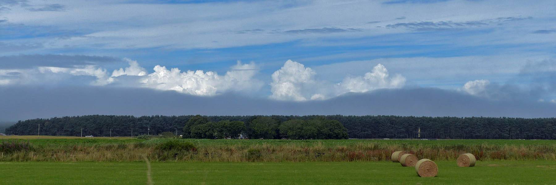 At 10AM we parked on Nairn High Street. Jack collected a prescription while I observed Nairn life and fog over the buildings and trees towards the coast. This was a classic haar, or sea fog. Towering cumulus could be seen building inland. The combination of fog and large clouds was quite alien to me and pretty too.
