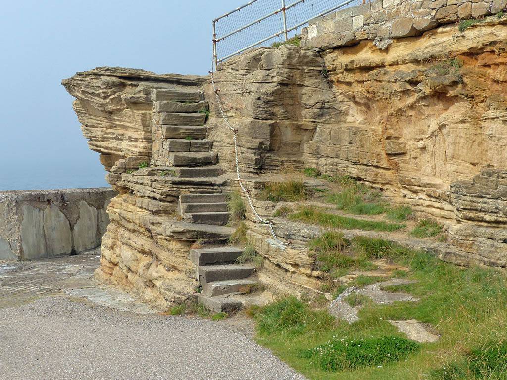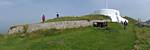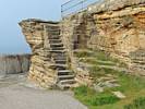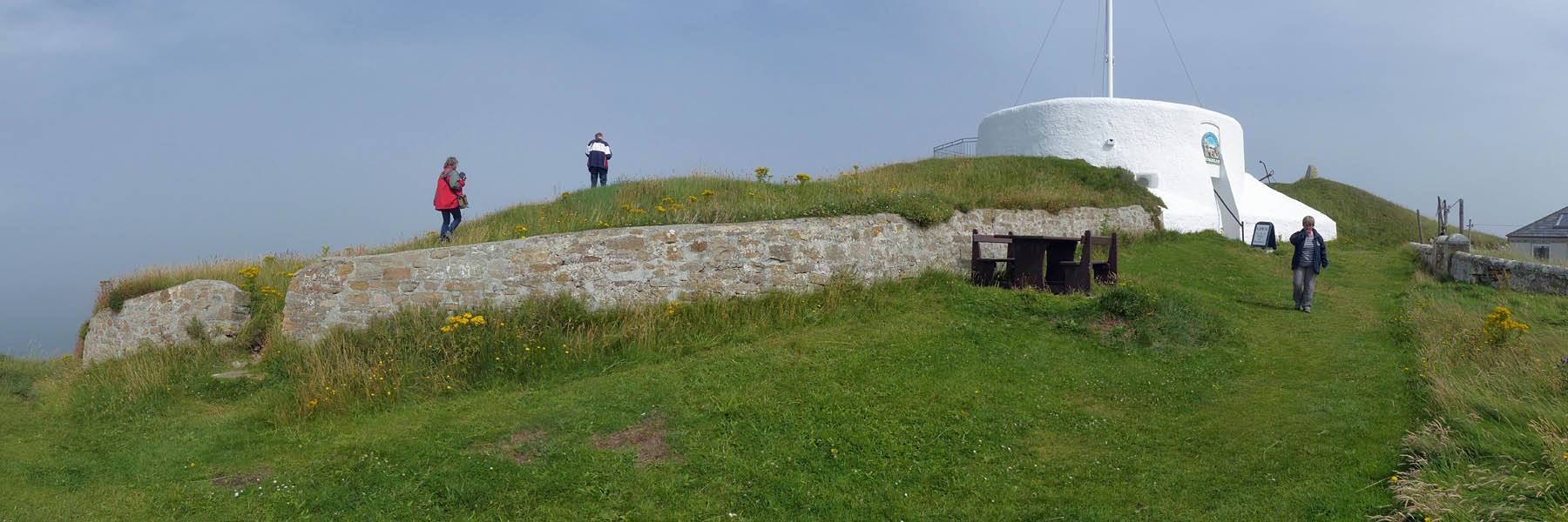 Looking down to the North side of the peninsula. | A fort at the top of the headland. | Looking back to Burghead Harbour from the top of the headland. | Meadow Brown in the harbour. | Small Tortoiseshell back up on the headland on a fort wall. |