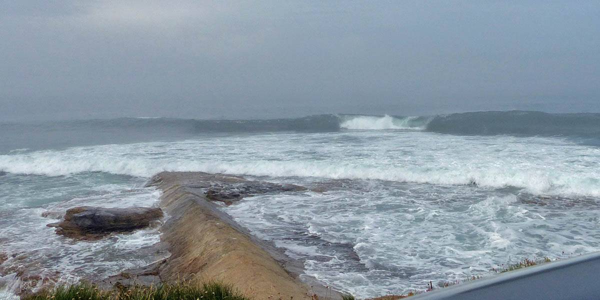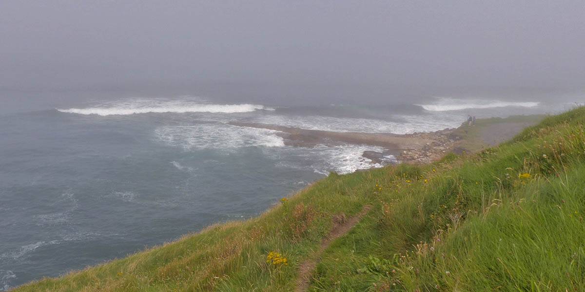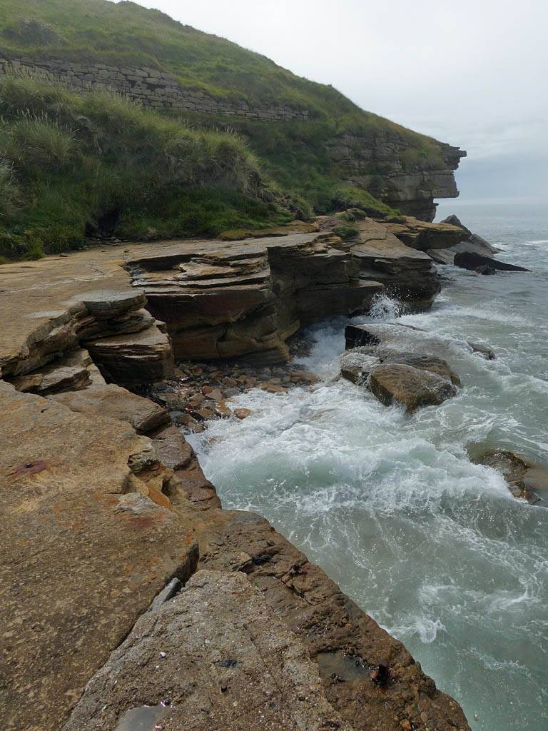 The North side of the headland. | Jack arriving in the mini as I look down from a small hill. | Waves crashing on the North side of the headland. |