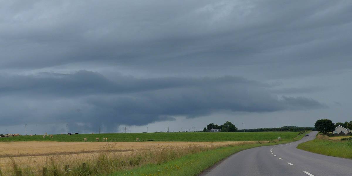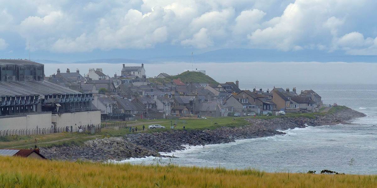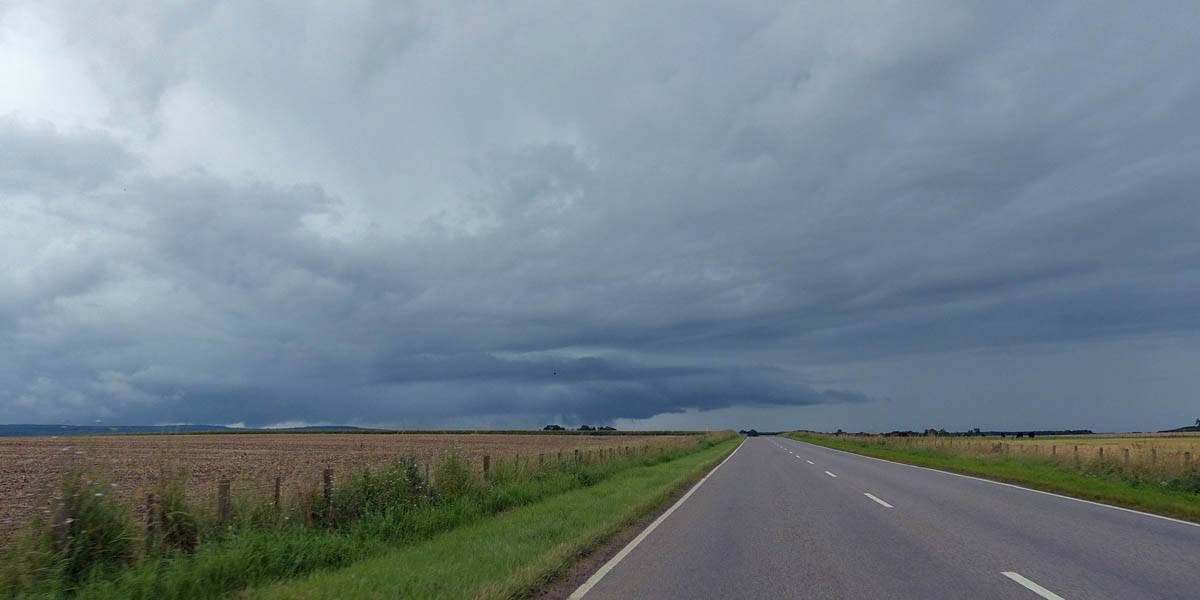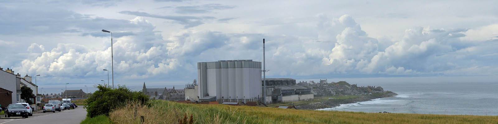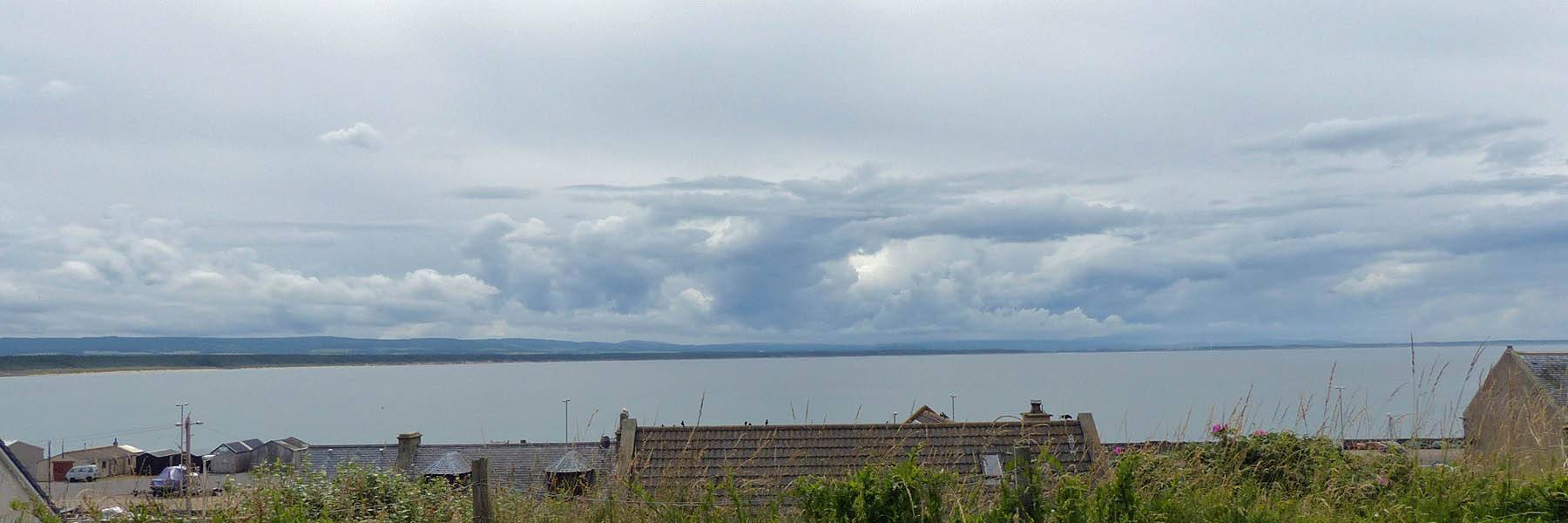 Looking North towards the Caithness cumulonimbus clouds as we leave Burghead on the coastal East Road (B9040) towards Lossiemouth. | Looking back Westwards to Burghead. |