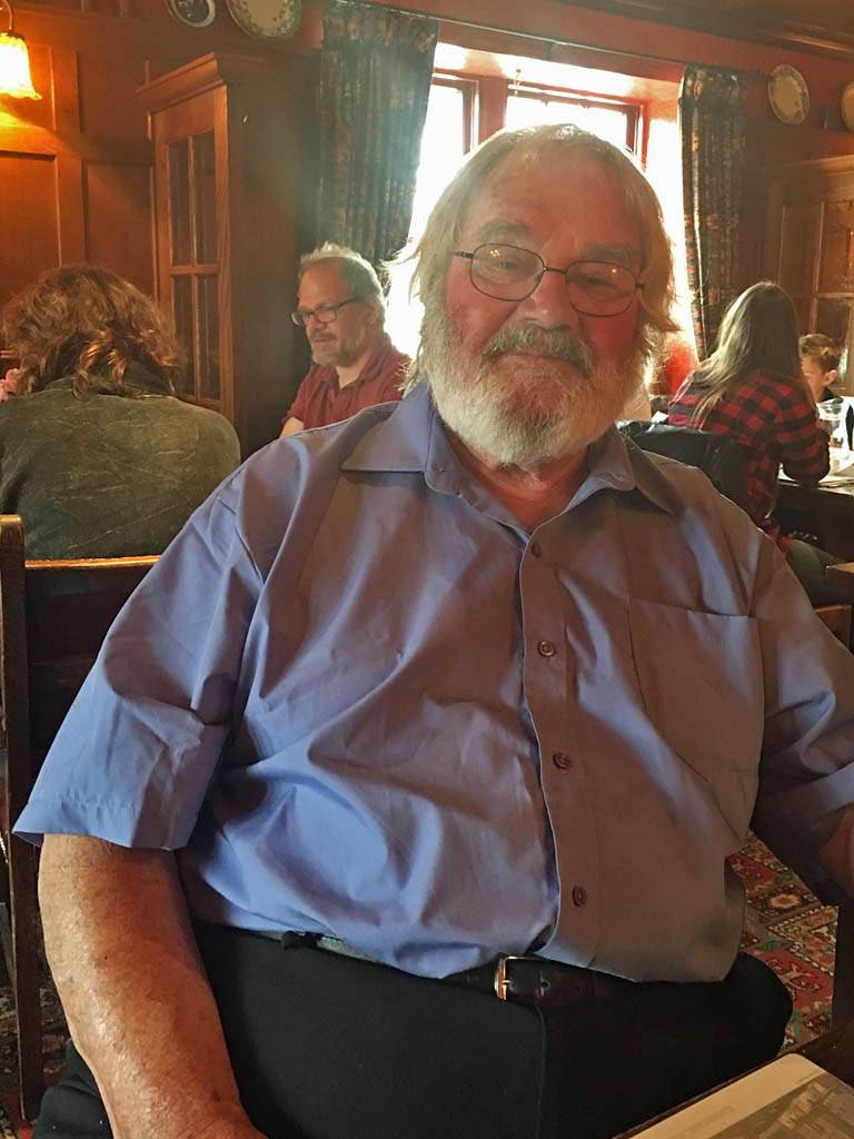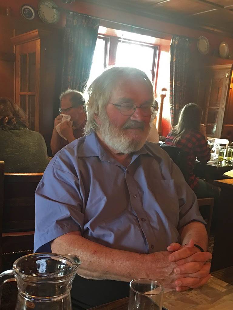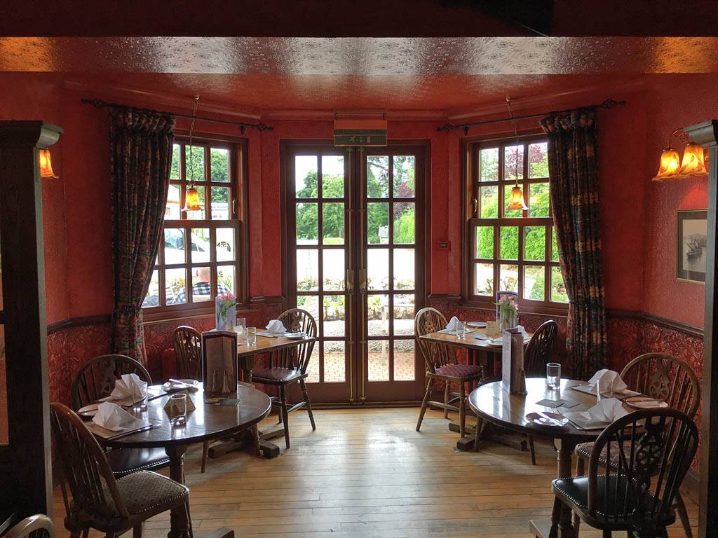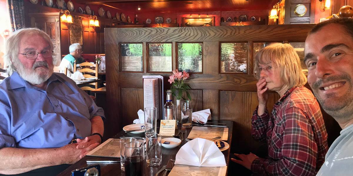 Back inside I processed more diary captions until we left for the pub at 11:40AM. Jack drove us in the Skoda to the Cawdor Tavern for our planned birthday lunch, arriving at 12:10PM. It was a nice pretty place with old style decor and lots of ornaments on the walls. While waiting for the food Jack was experimenting with the cameras including my iPhone camera. We had some complimentary home made wholemeal bread first. Then Stella had a starter of carrot and coriander soup. For mains Jack and I both had haddock and chips while Stella had the fish special which was plaice on the bone. Then Jack and Stella had coffees for afters while I couldn't resist a chocolate brownie which was delicious. I then paid up (I had agreed to and was happy to pay for this meal as a thank you for them letting me stay with them and for Stella's birthday) and we left at 2:15PM.