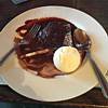 Demonstrating the art of the iPhone selfie. | Jack trying out my camera, taking a picture of Stella with her soup. | Jack posing for the iPhone and trying to make window glare look like a halo. | The main course arrives. Jack posing with a chip of course! | Dessert was amazing! |