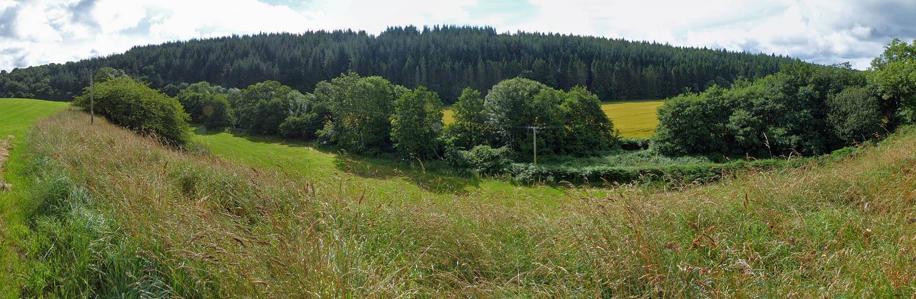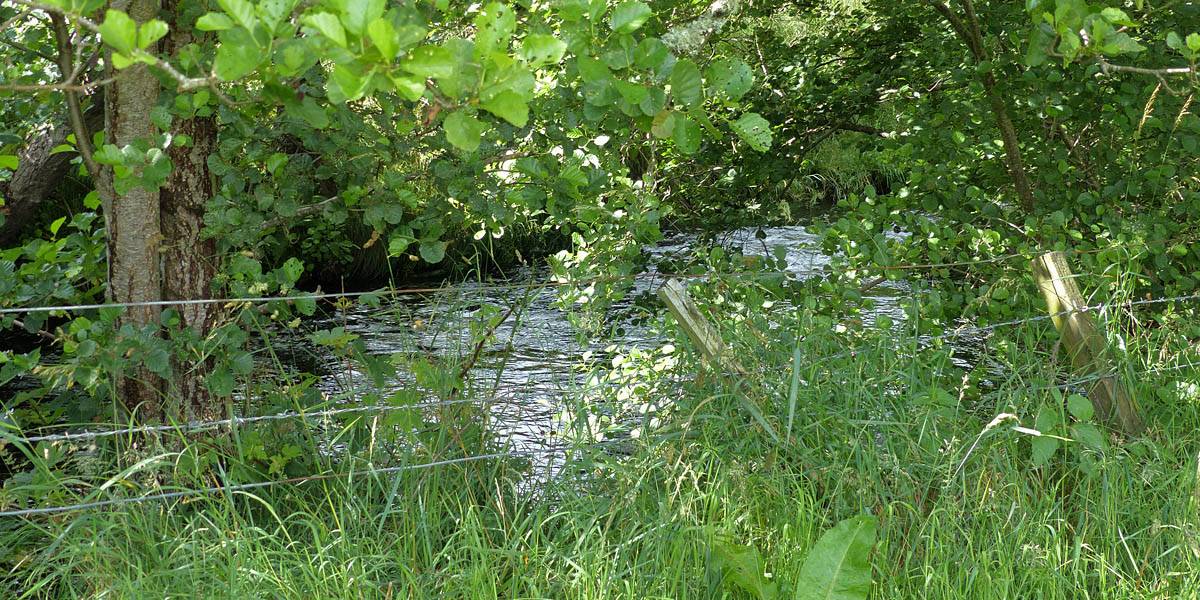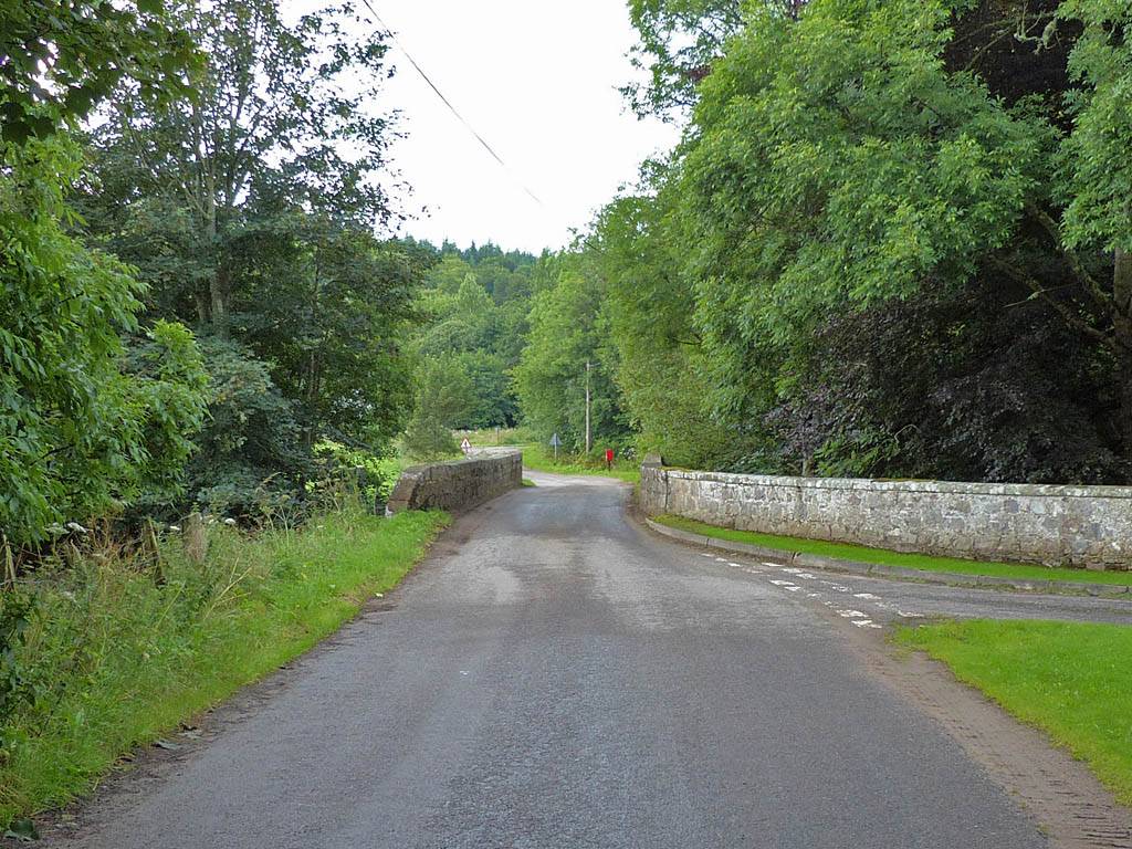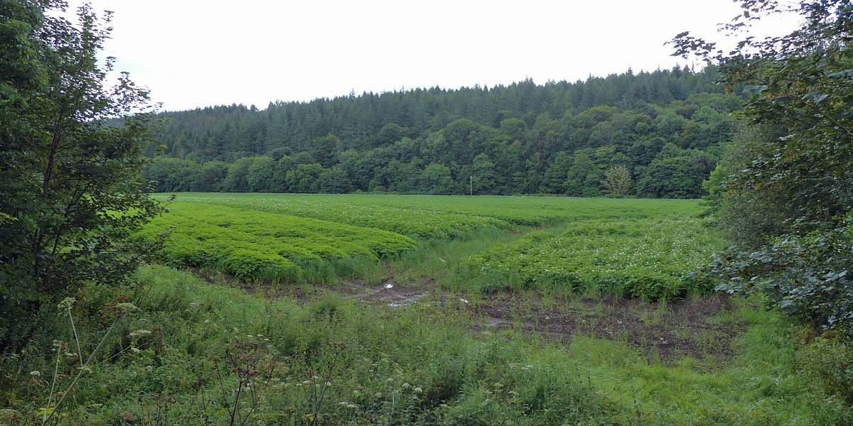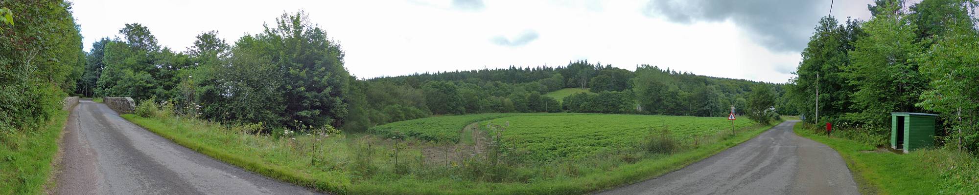 The bridge to the Northeast of Jack's place. | Looking across a potato field by the river. | Looking upstream and downstream along Muckle Burn from the bridge. | 180 degree panorama from just beyond the bridge. |