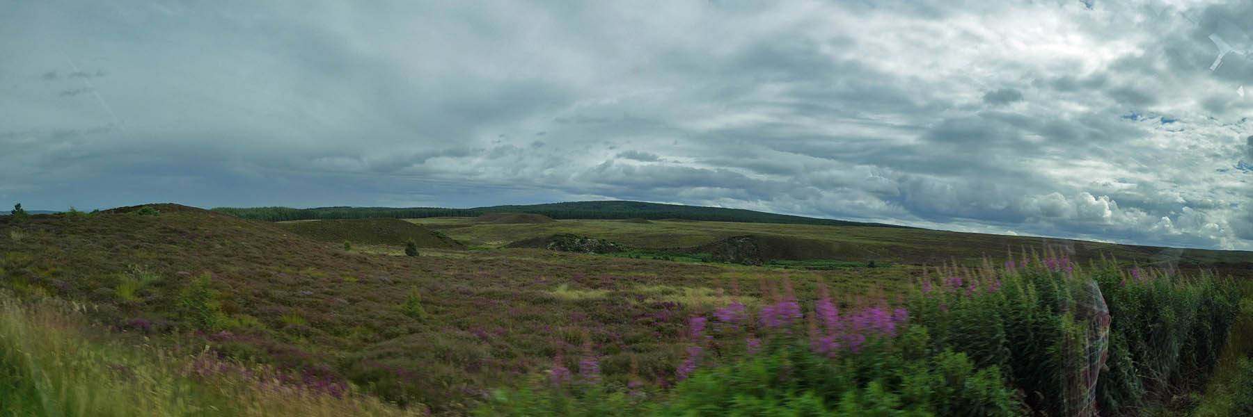 Driving across the wild open moors South of Cawdor. |