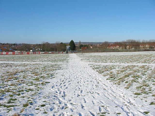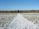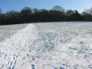The half frozen pond at the top of the hill from opposite sides. | Those Wembley Stadium cranes as seen from Barn Hill. | Bird Tracks. | On my way back down the hill. |