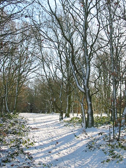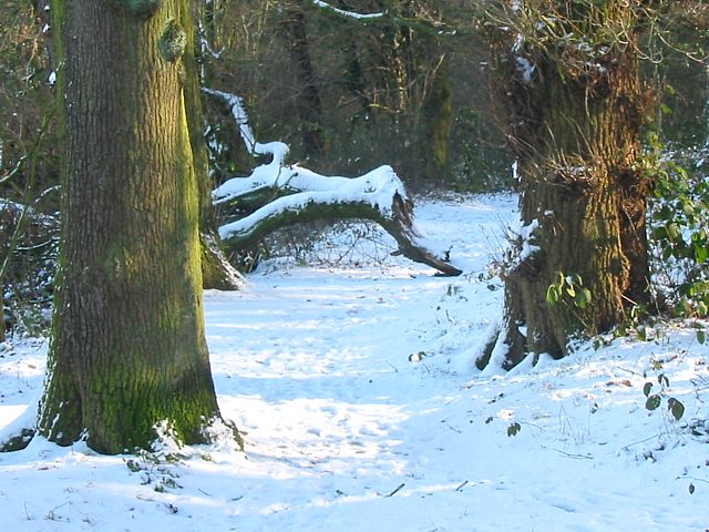 At approximately 5pm on 28th a thundery cold front swept down rapidly from the arctic and dumped a couple of centimetres of snow in just an hour. It started off as heavy rain. 5 minutes later it was a howling blizzard and everything outside got plastered. However this snowstorm was not as bad or as heavy as 30th January last year. After it cleared the slush on the roads and pavements promptly froze, turning everything into an icerink. So unable to get to work on the 29th I worked from home. At lunchtime I swapped my normal walk around Stockley Park for a walk up the local hill - Barn Hill - which has a wooded area and ponds at the top.