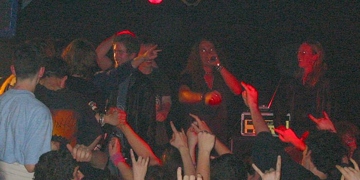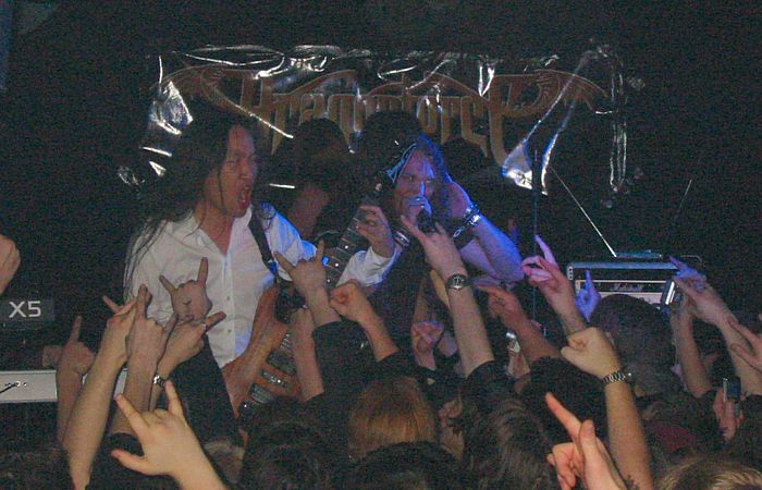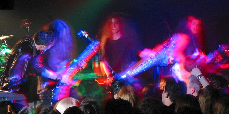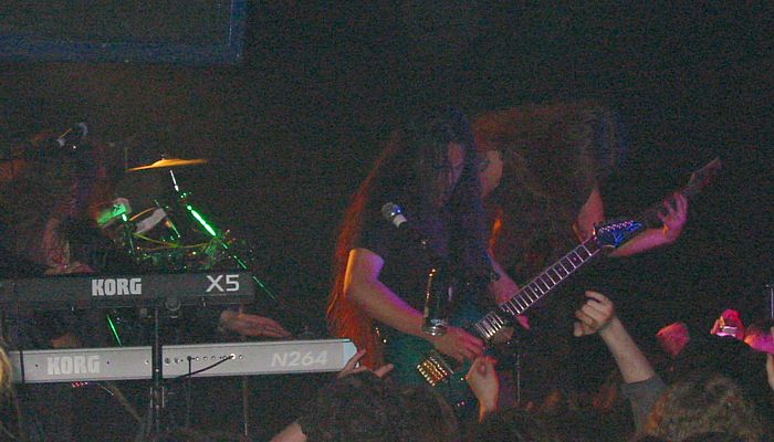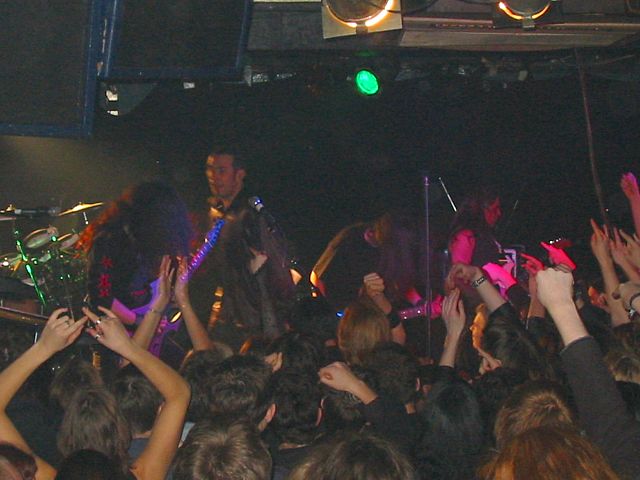 I went to a concert this evening. I had also got asked to take some pictures, so for the first time I tried taking pictures at a heavy metal gig. The conditions were very challenging as the camera doesn't handle the dark very well, especially with the rapidly changing stage lights. I also couldn't get anything useful below ISO 200, so the pics were a little grainy too. Despite that I had a good vantage point at the top of the stairs above the main floor, and some interesting pics emerged. Unfortunately fewer Dragonforce pics were salvageable than Heavenly pics for some reason. Read the review in the gigs section for full details. But judge the pics for yourselves: