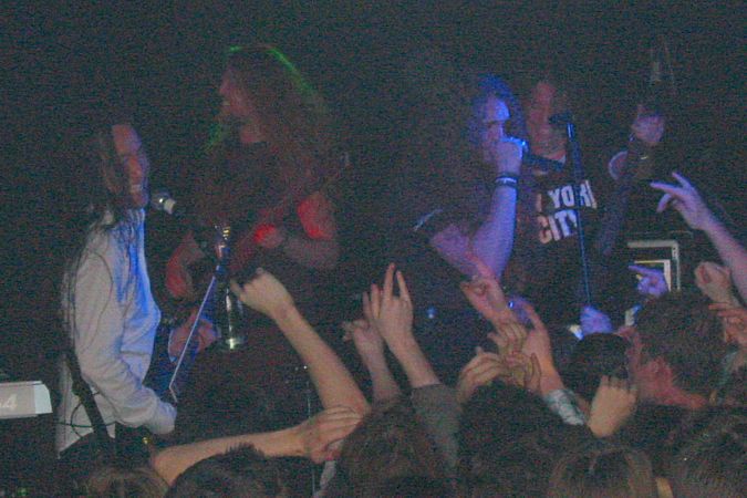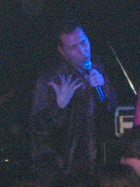 One of the test shots taken before the start. The room was packed! | The support band was called Heavenly. | Slow exposure with no flash. Turned out surprisingly psychadelic. | A dark closeup of the lead singer. |