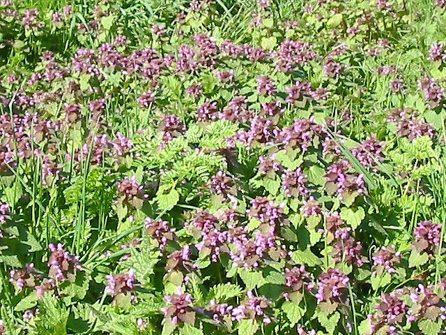 This bird kept wagging it's tail. Preparing for mating season perhaps? | Yellow Crocus popping up out of the grass. | More evidence of spring emerging. | A rapidly growing bed of nettles. | A ladybird exploring the nettles. | Closeup of tiny flowers (less than 1cm across). |