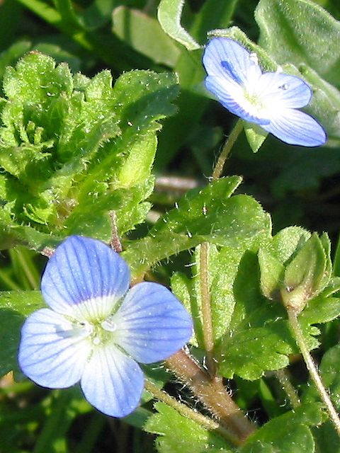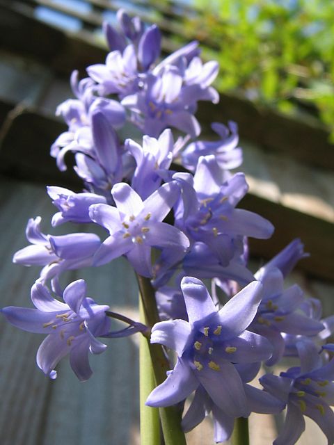 Closeup of tiny (~5mm) white flowers. | Looks like some kids were here first. | More bluebells. | A closeup of the moss on the log in Bluebells5.jpg. |