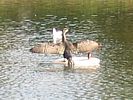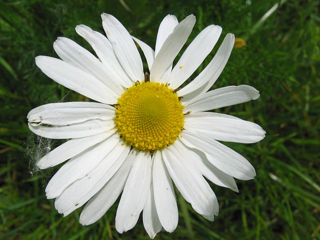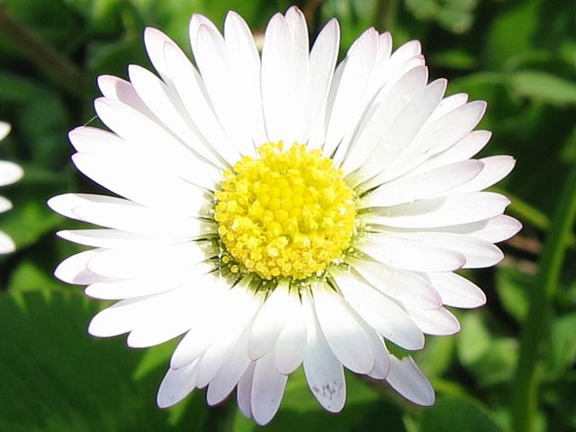 The same type of flower as seen on 23rd April 2003 (~5mm) now seen even closer. | My best shot yet of a crow. | A standard 2cm garden daisy as you've never seen it before. The dark patch at the bottom is my shadow. | About time we got some more duck pictures. |