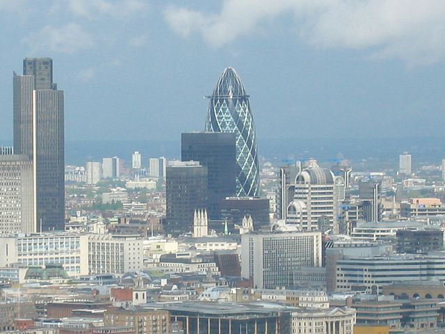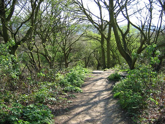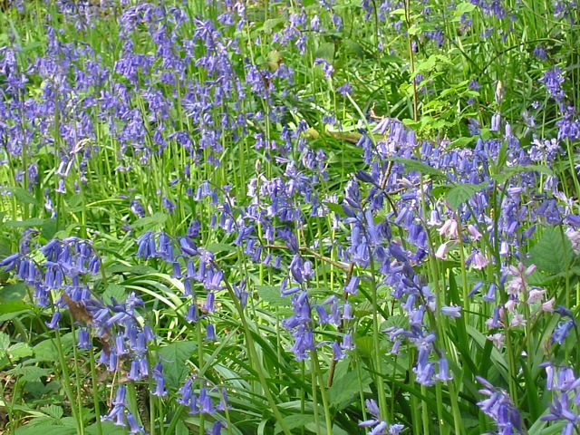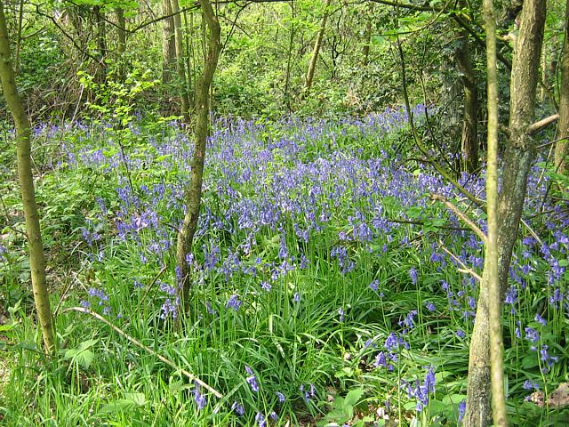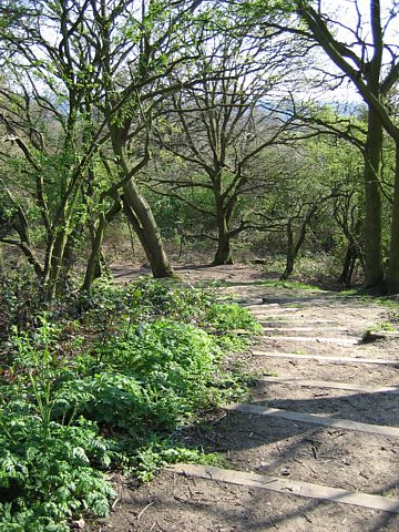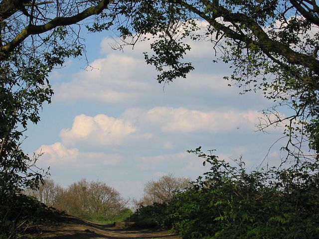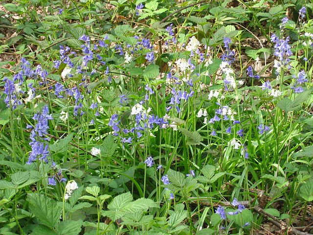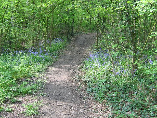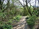 In the distance you can see where I parked the car (next to the shopping centre. | The Wembley Stadium cranes | Descending through the woods down the South side of the hill. The 3rd picture looks back up the hill. As a glider pilot I note that those thermal clouds are atleast 6000 feet high! | Bluebells starting to flower in the undergrowth. |