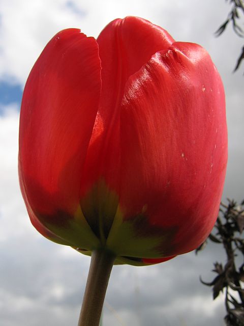 Two overhead tulip shots. Plus a view of the red one from underneath thanks to the twisty flipout screen. | Bluebells also as seen from underneath. | Whitebells? | A tiny (4mm) spider on my window, seen from underneath. |