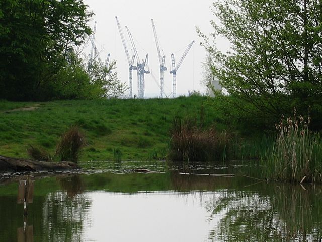 The cranes building the new Wembley Stadium, as seen from Stockley Park. | Blimey a flowering plant in January... |