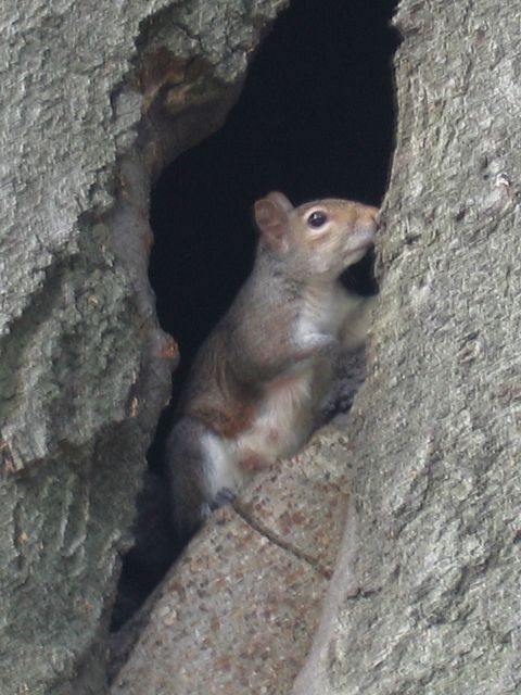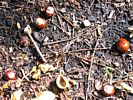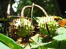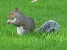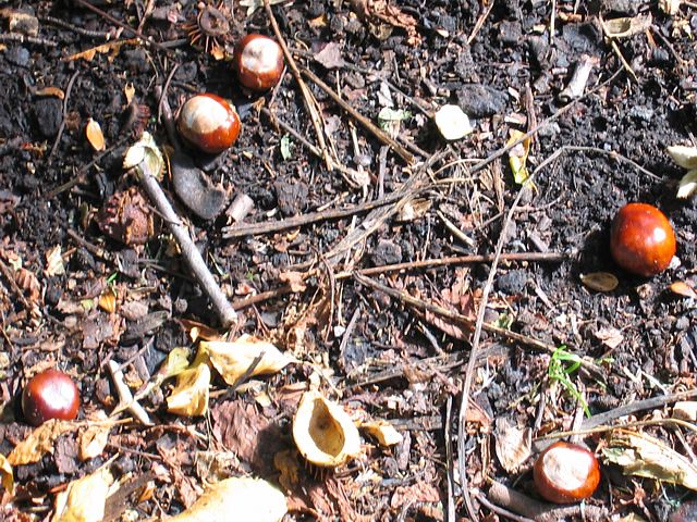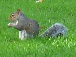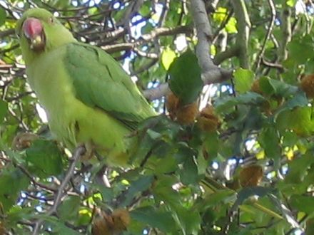 Spiky Sweet Chestnut seed pods. | There are plenty of squirrels around in Gunnersbury Park. | A flock of Parakeets also live in the park. |