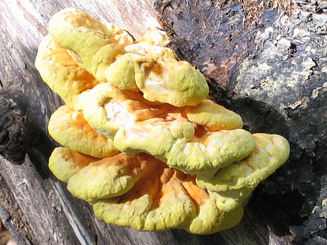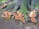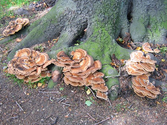 Fungus growing at the base of a tree. | A curious small tree that looks like a good shelter. | These flowers growing under a Sweet Chestnut tree look remarkably like Crocuses, and were growing in large groups in places. | The Sweet Chestnut tree. |