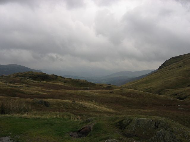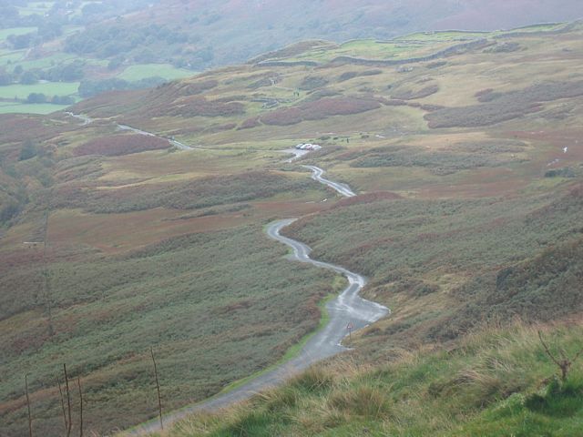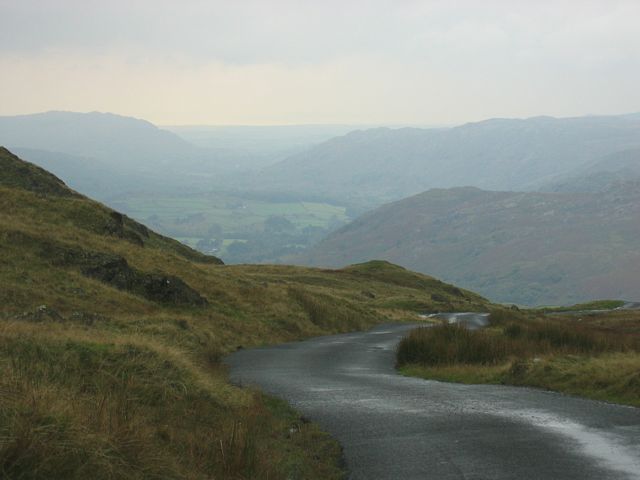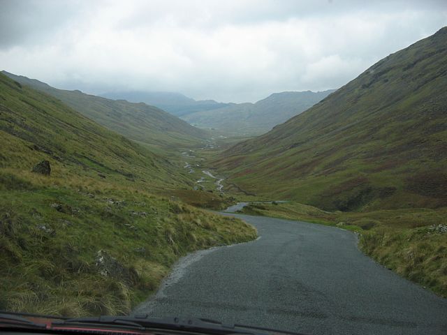 The north shore of Lake Windermere, looking south to the lake, and north into the hills (from the Waterhead area). | Heading into the mountains as I went towards Wrynrose and Hardknott passes. | Up in the mountains. |
