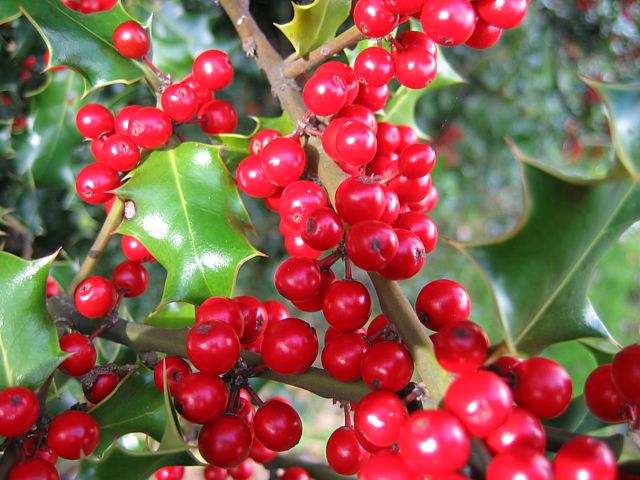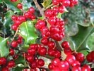 Two long range shots of a bird slowly rotating on a platform with wings open. | A holly bush full of ripe berries. | Two more shots of autumnal colours. |