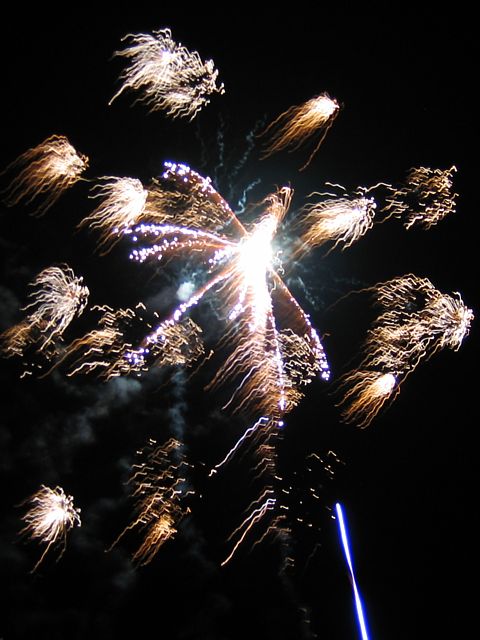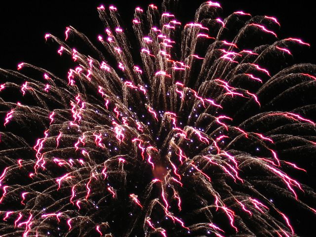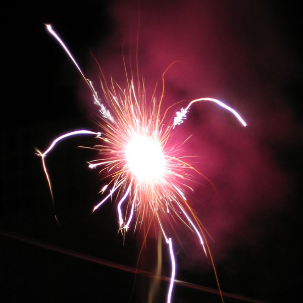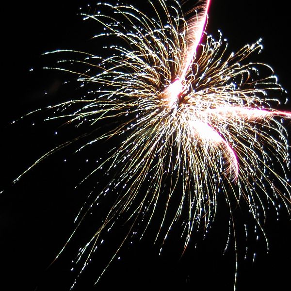Pink dew-covered rose. | Fireworks taken with a 1s exposure. | More fireworks taken with a 2s exposure. |