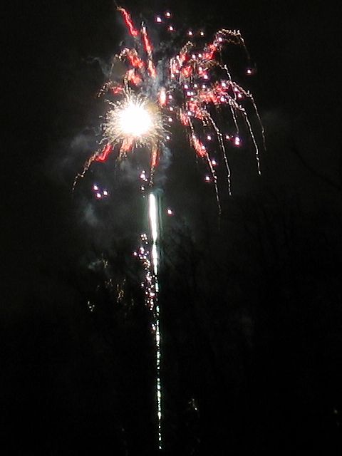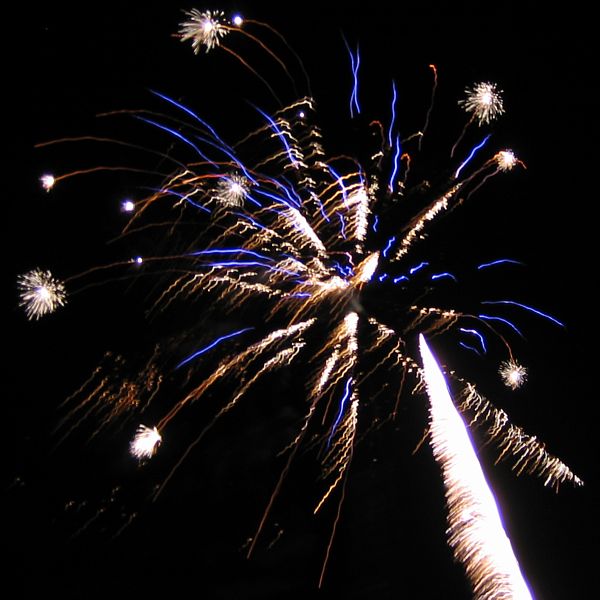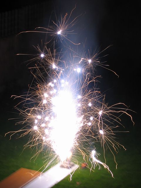Fireworks taken with a 15s exposure. | A rocket taken with a 2s exposure. | A roman candle taken with a 1s exposure. | A catherine wheel taken with a 0.5s exposure. |