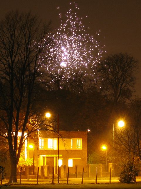 A November rose in the rose garden at Gunnersbury Park. Then later on I zipped over to Lasham Airfield for some Guy Fawkes night fireworks. You can see the drift from right to left due to a westerly breeze. Later on after I got home people were setting off fireworks from a house behind the nearby synagogue. 15 second exposures of the synagogue made for interesting results.