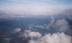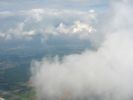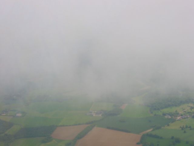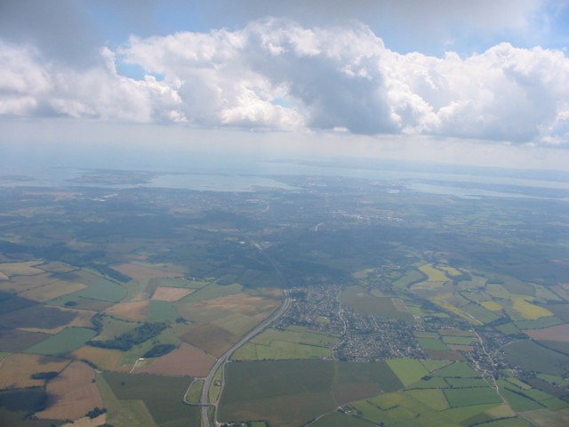 The South Coast as seen from Petersfield at about 5000' above sea level. The large road is the A3 leading to Havant and Portsmouth. | Petersfield from the East at 5000' ASL. | Cloud's eye view of M3 J8 from West. Popham airfield is on the center right edge of the pic. Height 5500' ASL after climbing up side of cloud. |