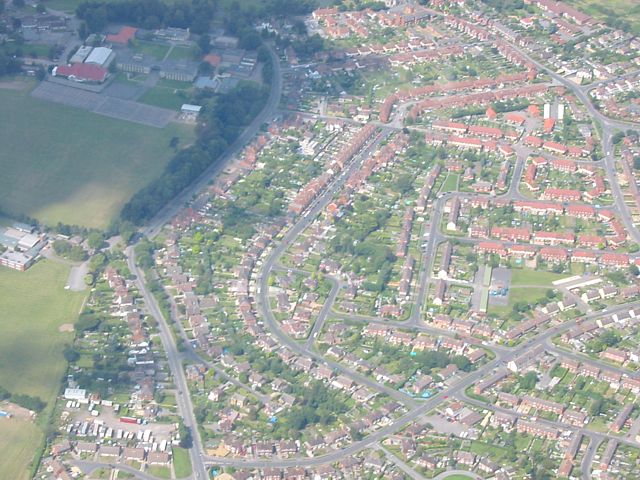 K13 about to land. | Instrument panel of the glider I flew today. | Typical view South towards Alton from the airfield. Numerous gliders marking a thermal up ahead. | Basingstoke from about 3000 feet in slightly hazy conditions. |