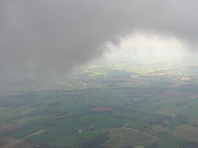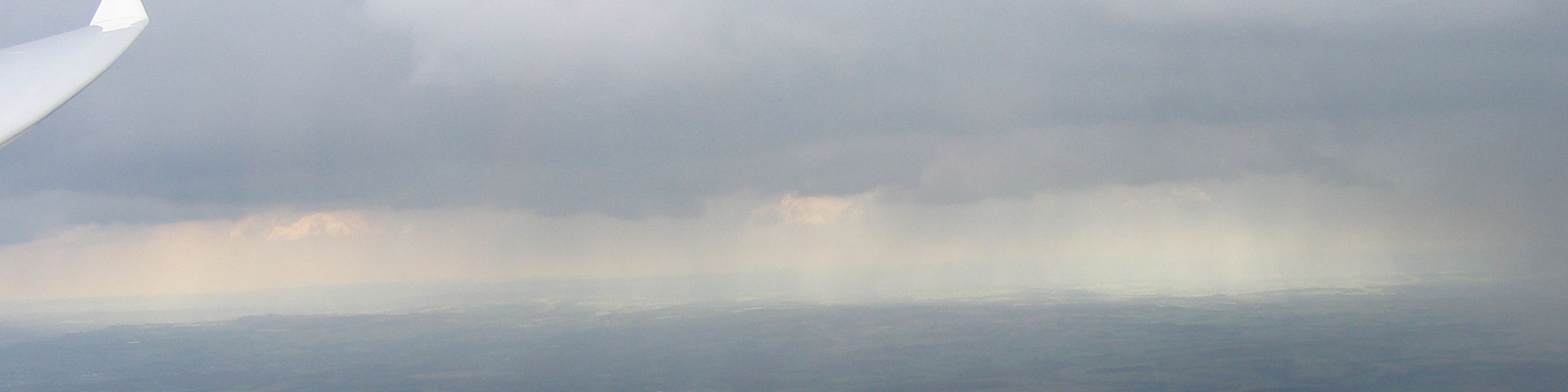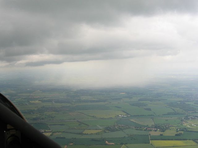 A localised shower to the north of me (other side of the M3). | Large shower approaching from the south west. Look how cloudbase drops near to it. | A closer look at the low cloud near the shower as I climb closer to cloudbase. | Now above the low cloudbase flying south east along the wall towards Alton in strong lift. | Passing Lasham, seen from the south west. |