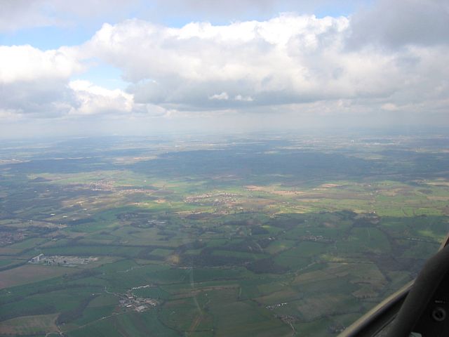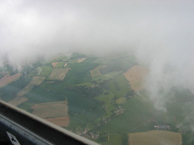 The clubhouse at Parham airfield. | The thermal under this cloud just took me to the cloud's 6000 foot cloudbase (6600'QNH, or FL64). | A view of Newbury to the North from 6000 feet, |