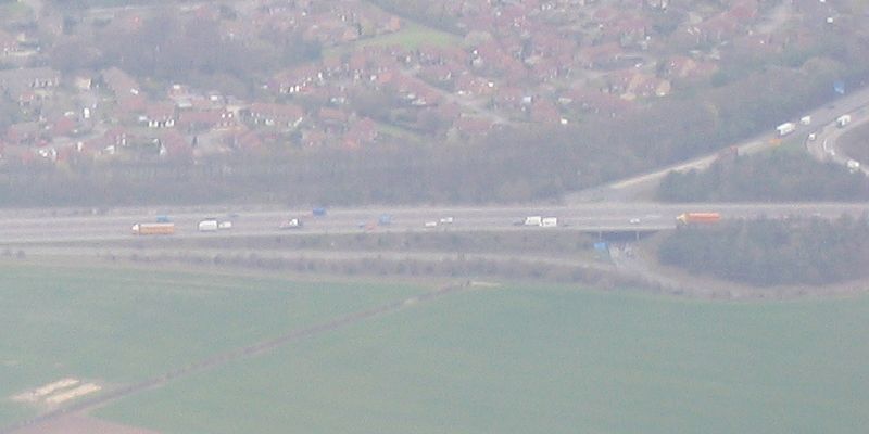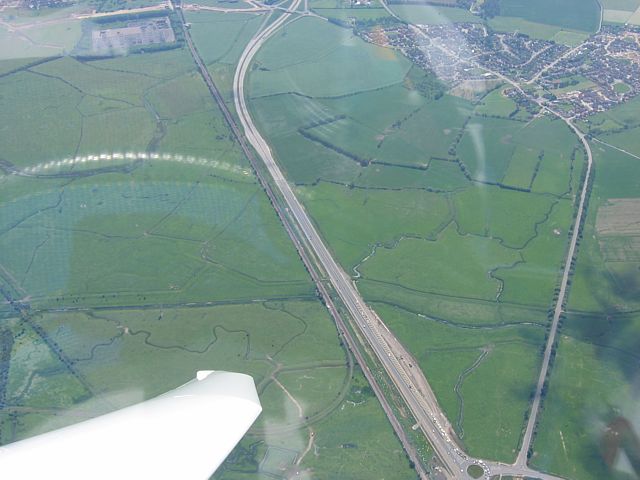 Canterbury Cathedral from the north and south. Shame the south side is slightly blurry. | Headed north to the Isle of Sheppey on the edge of the Thames Estuary. The Isle is to the right of the red yaw string. | The A249 road where it crosses to the Isle of Sheppey near the turn point (seen from the south east). | Looking south west along the A249. The town to the top right is called Iwade. |