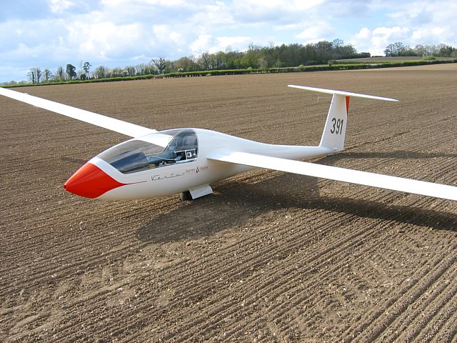 Doh! I landed out. This field is half way between Newbury and Hungerford. The road on the Southern edge of the field is the A4. So atleast access was easy. All was going well until I got to this area, when the local thermals turned inside out and spat me out of the sky. Atleast, as you can see, I chose a lovely flat and smooth (and huge) field to make a nice gentle landing in. Unfortunately because it had just been sowed with a new crop I couldn't aerotow retrieve, so I took these pictures during the 3 hour wait to be rescued by trailer.