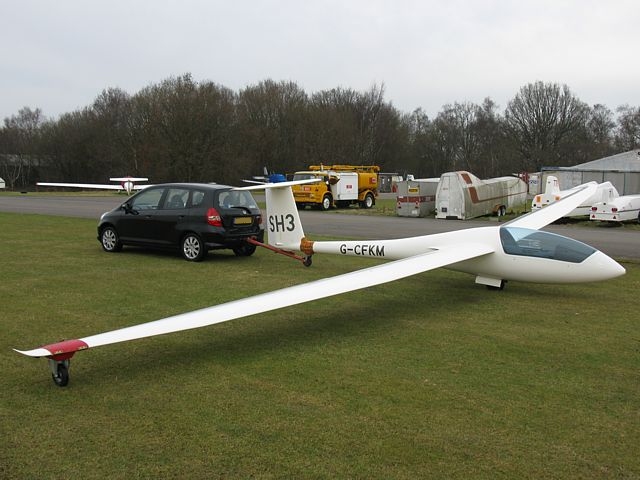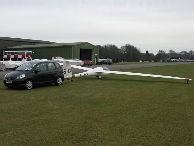 My first flights of 2009 today, which culminated in a wave flight! The South Downs were generating weak wave in the brisk Southeasterly wind. I missed the best of it as the wind was dropping but caught enough to extend a 2500 foot aerotow flight to almost an hour (and climbed slowly to 3000 feet before I lost the wave). Today was also noted as my new car's first trip to Lasham, and a chance to test the towbar too.