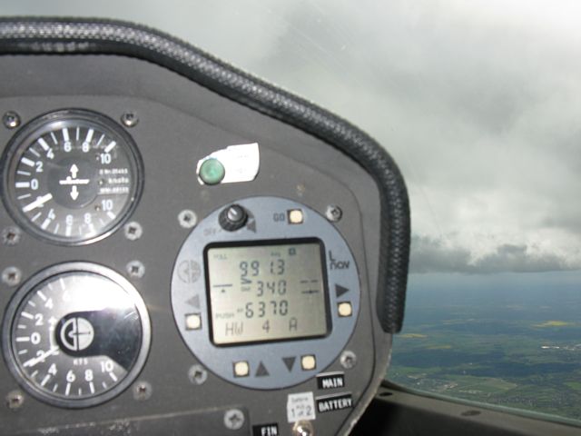 Market Harborough turning point (MAH) from the North (Closeup) and from the West. | Climbing up the side of a 'low' cloud above Market Harborough. | Looking at Hus Bos gliding club from the East as we head South back to Lasham. | Another gorgeous cloudscape. | Accidental shot when we got up to around 6400 feet. (LNav is QNH.) |