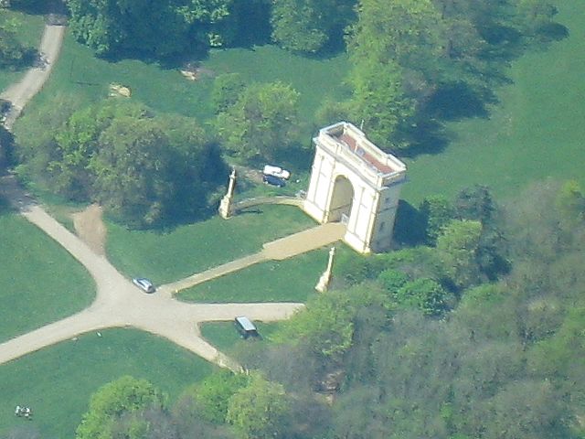 Buckingham from the Southwest. | The Corinthian Arch to the NW of Buckingham. | Soaring over Akeley, North of Buckingham. | Soaring in a thermal. | Stowe School, NW of Buckingham, from the ENE. |